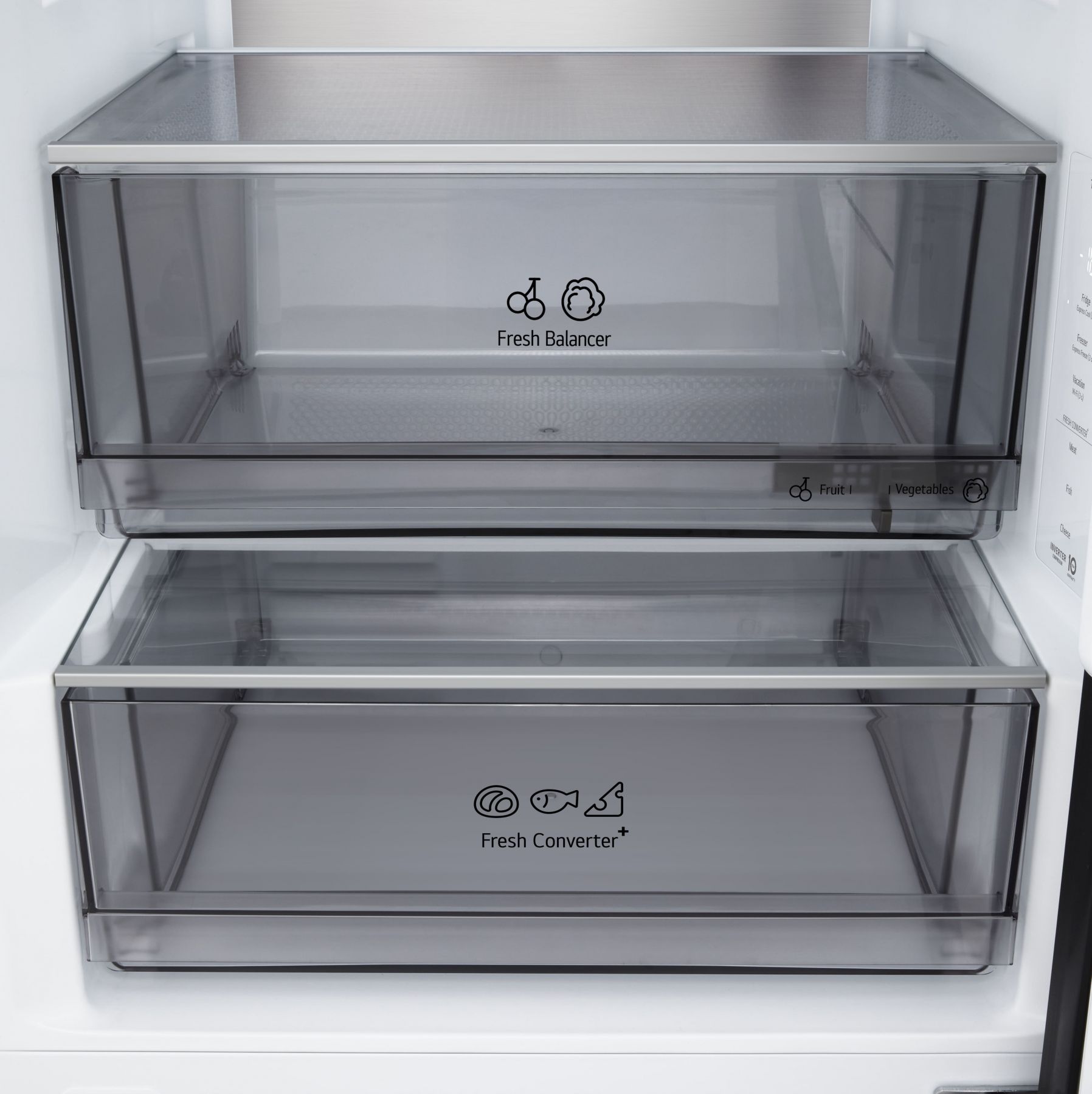Холодильник LG з нижн. мороз., 203x60х68, холод.відд.-262л, мороз.відд.-113л, 2дв., E, NF, інв., диспл внутр., Fresh Сonverter, Metal Fresh, чорний матовий