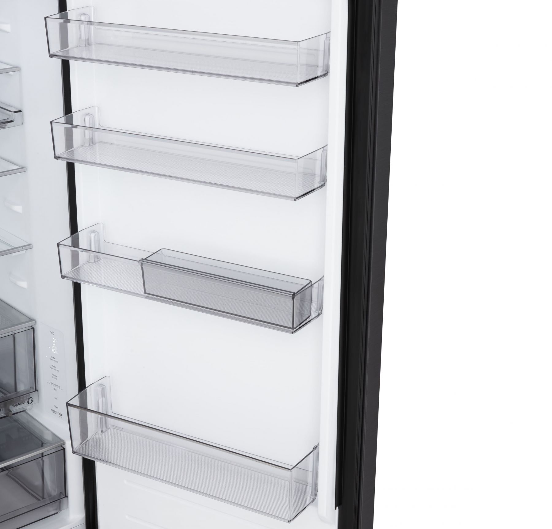 Додатково:Перевішування дверей, нульовий зазор, Антибактеріальний ущільнювач Bio Shield, Режим економії електроенергії Eco Friendly, LED-освітлення, кришка Moist Balance Crisper для підтримання оптимальної вологості, Кришка для підтримки оптимальної вологості, лоток для заморожування льоду, винна полиця, складана полиця, пересувний кошик, міні кошик на дверцятах, металева задня стінка Metal Fresh