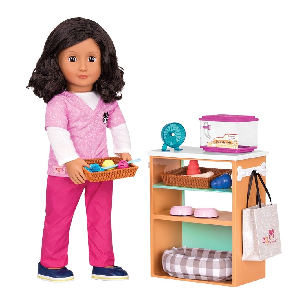 Набір аксесуарів "Зоомагазин" є цікавим доповненням до іграшок Our Generation, а також містить в собі 23 предмети. У цей набір входять всі аксесуари і предмети необхідні для догляду за твариною, такі як: ліжечко для домашнього улюбленця, зручна сумка-переноска, касовий апарат, акваріум для рибок, стелаж та багато інших цікавих предметів. Завдяки цьому набору дитина відчує себе справжнім власником міні «зоомагазину».