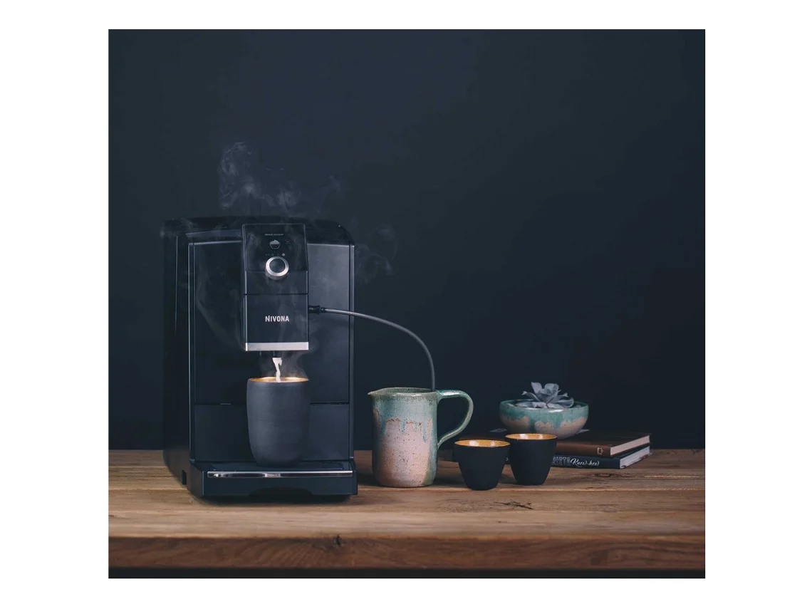 Функції:капучинатор, подача гарячої води, попереднє змочування, режим ECO, моя кава, регулювання висоти дозатора для чашок, 3 профіля системи AROMA BALANCE, 5 рівнів регулювання міцності кави, 3 рівня температури у функції подачі гарячої води, вбудований Bluetooth для з'єднання з додатком Nivona