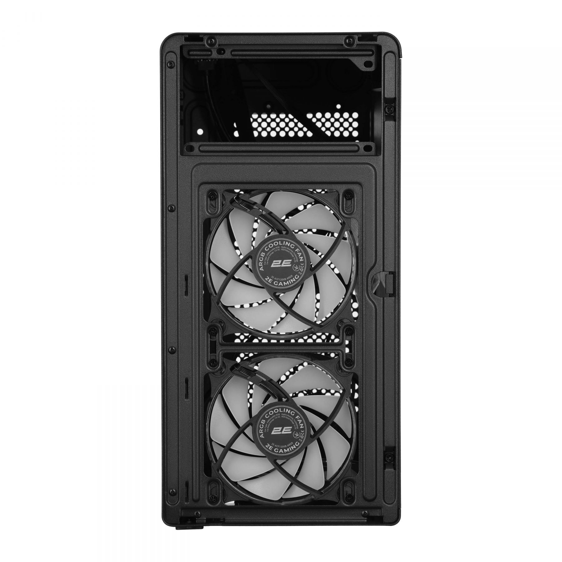Охолодження:Верхня панель: 2x 120 ARGB (2E-ACF120VB-ARGB), Задня панель: 1x 120 ARGB (2E-ACF120VB-ARGB)