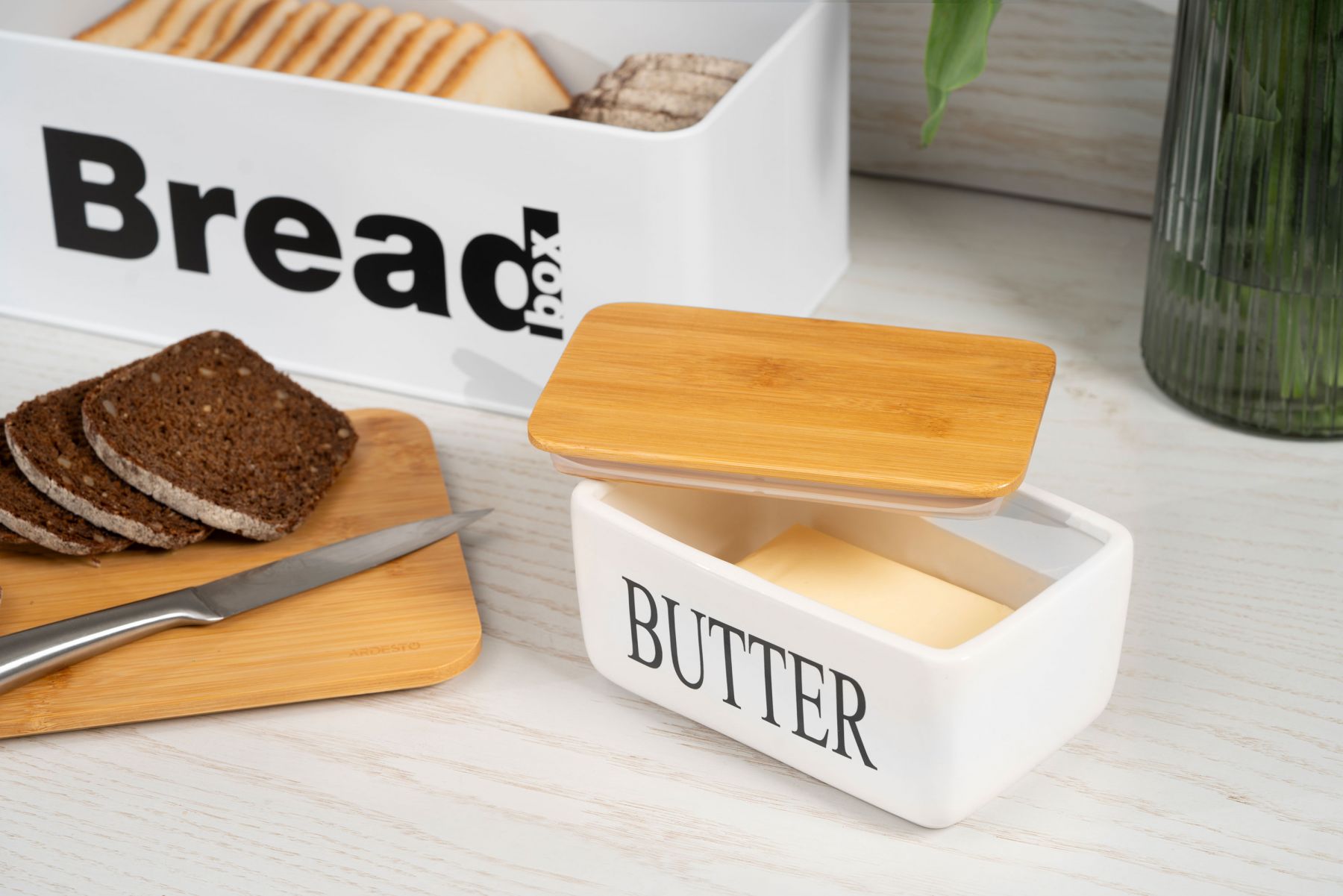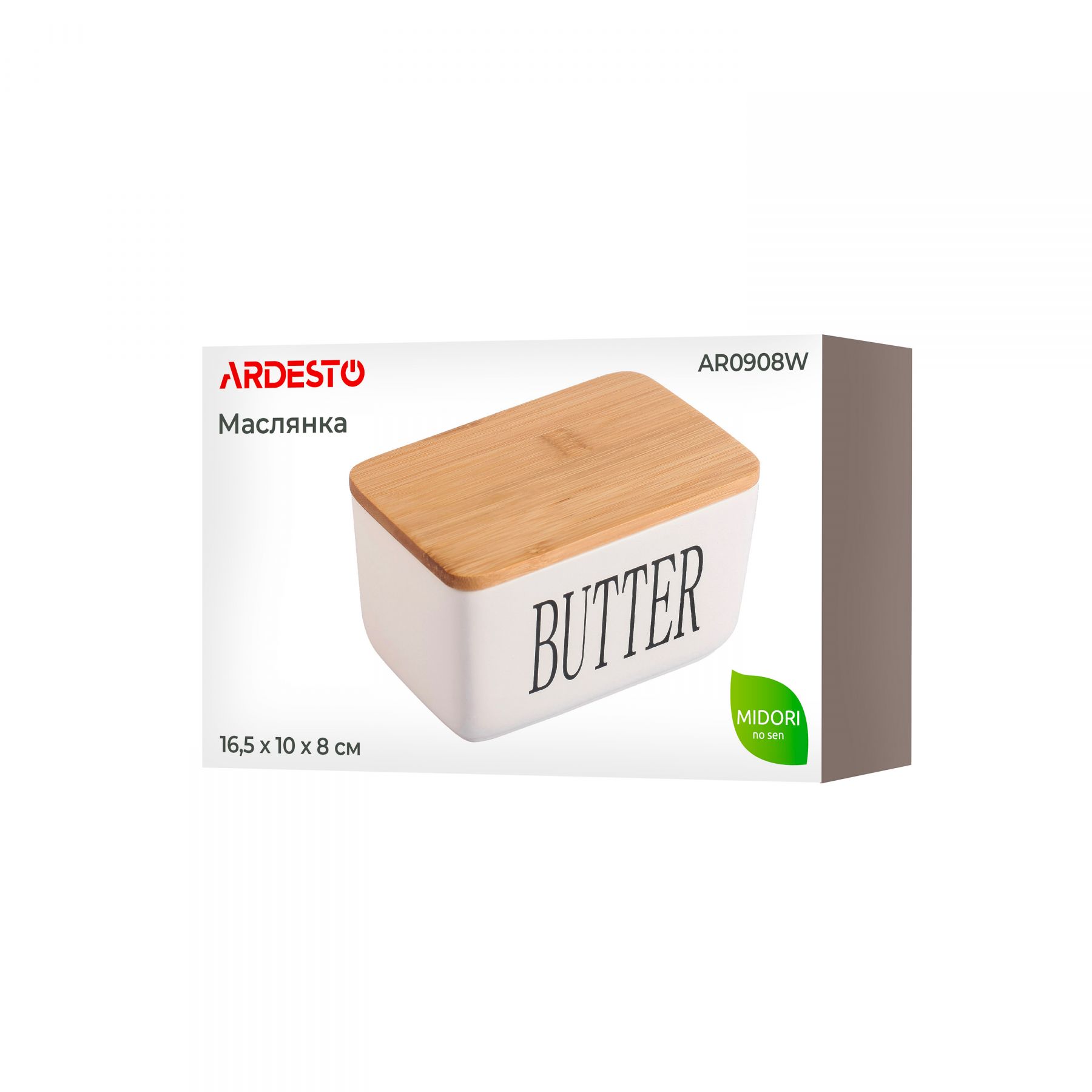 Маслянка ARDESTO Midori 16.5х10х8см, кераміка, бамбук, біла