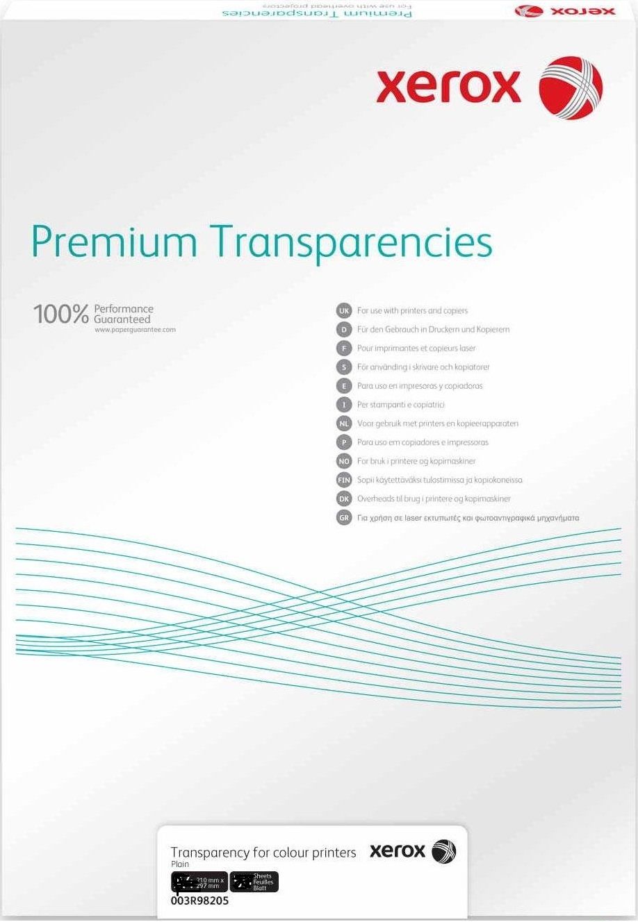 Асортимент плівок Xerox Premium спеціально розроблений, щоб забезпечити широку сумісність, повний спектр форматів та високу якість. На прозорі плівки XEROX зображення наноситься так само легко, як на звичайний папір. Плівки XEROX надають яскравого, живого кольору та чіткого чорного тексту – за допомогою цих плівок ви можете створити найефектніші документи!