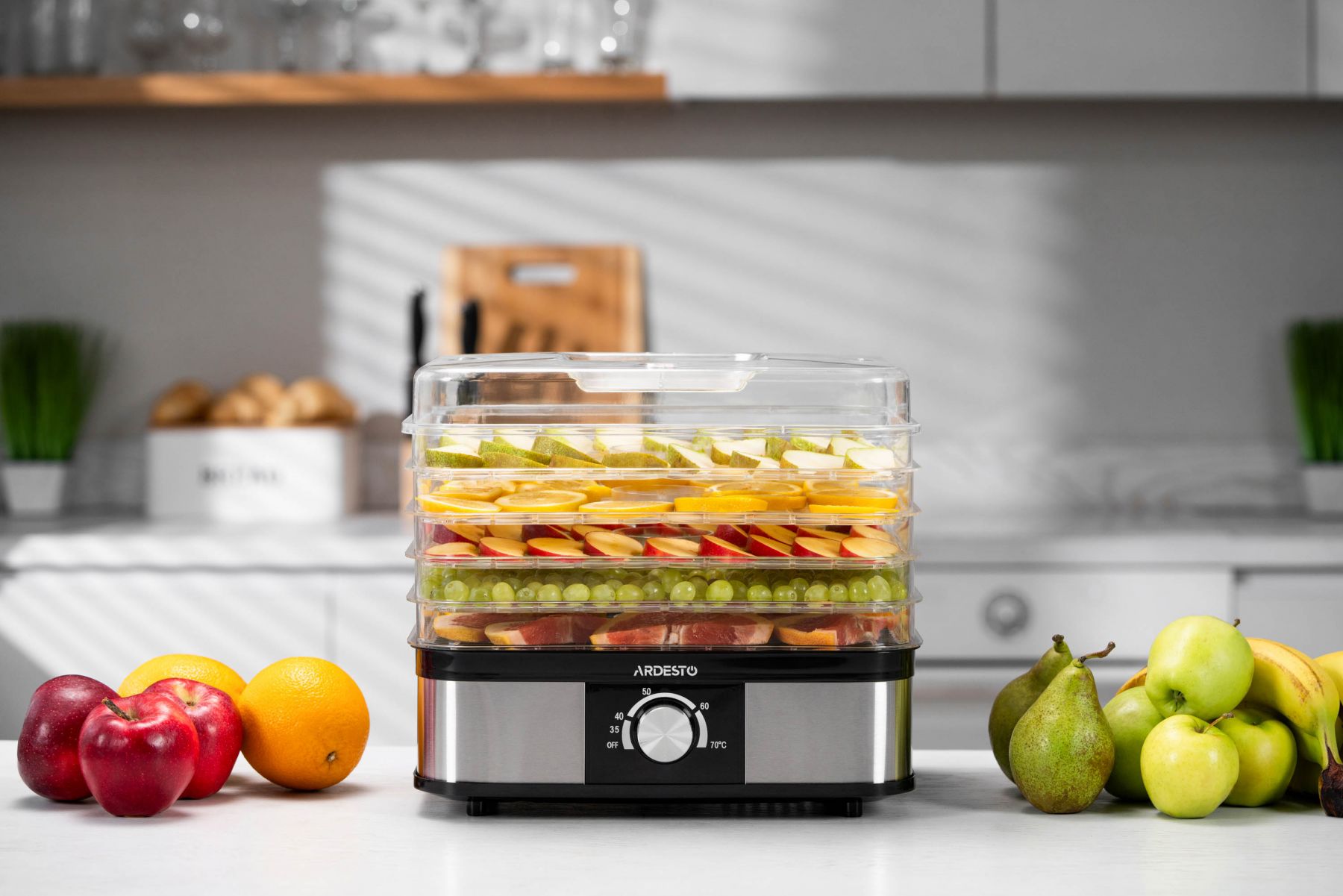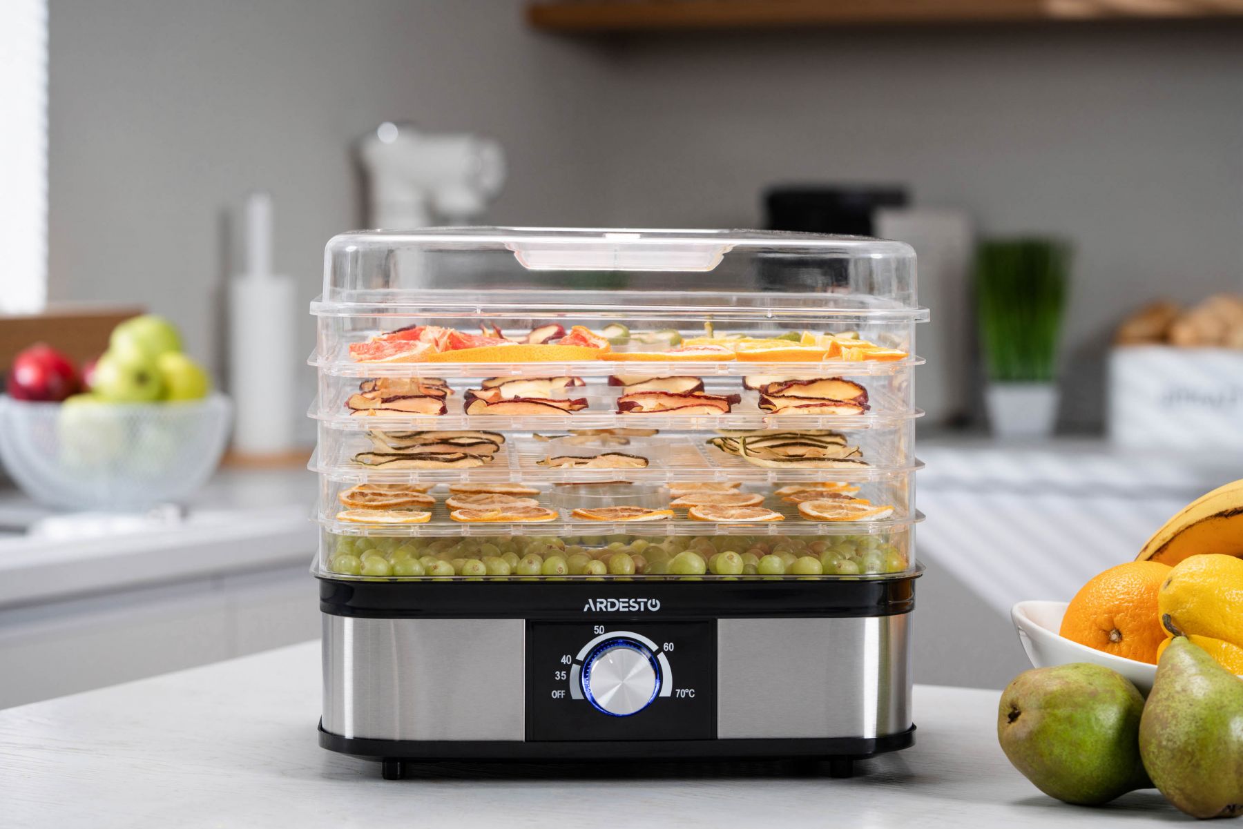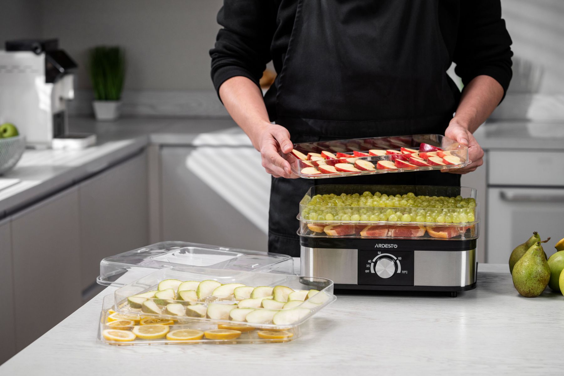 Сушарка для продуктів ARDESTO 245Вт, піддонів - 5x3см, макс - 70°С, пластик, чорний+нерж