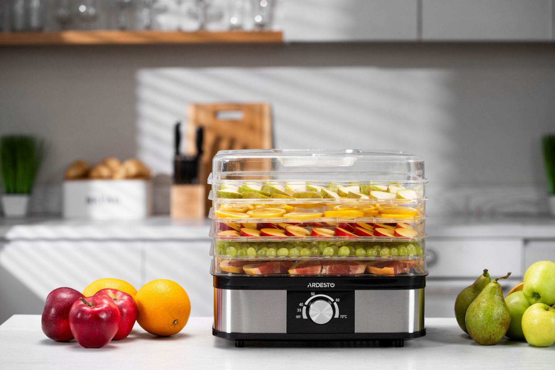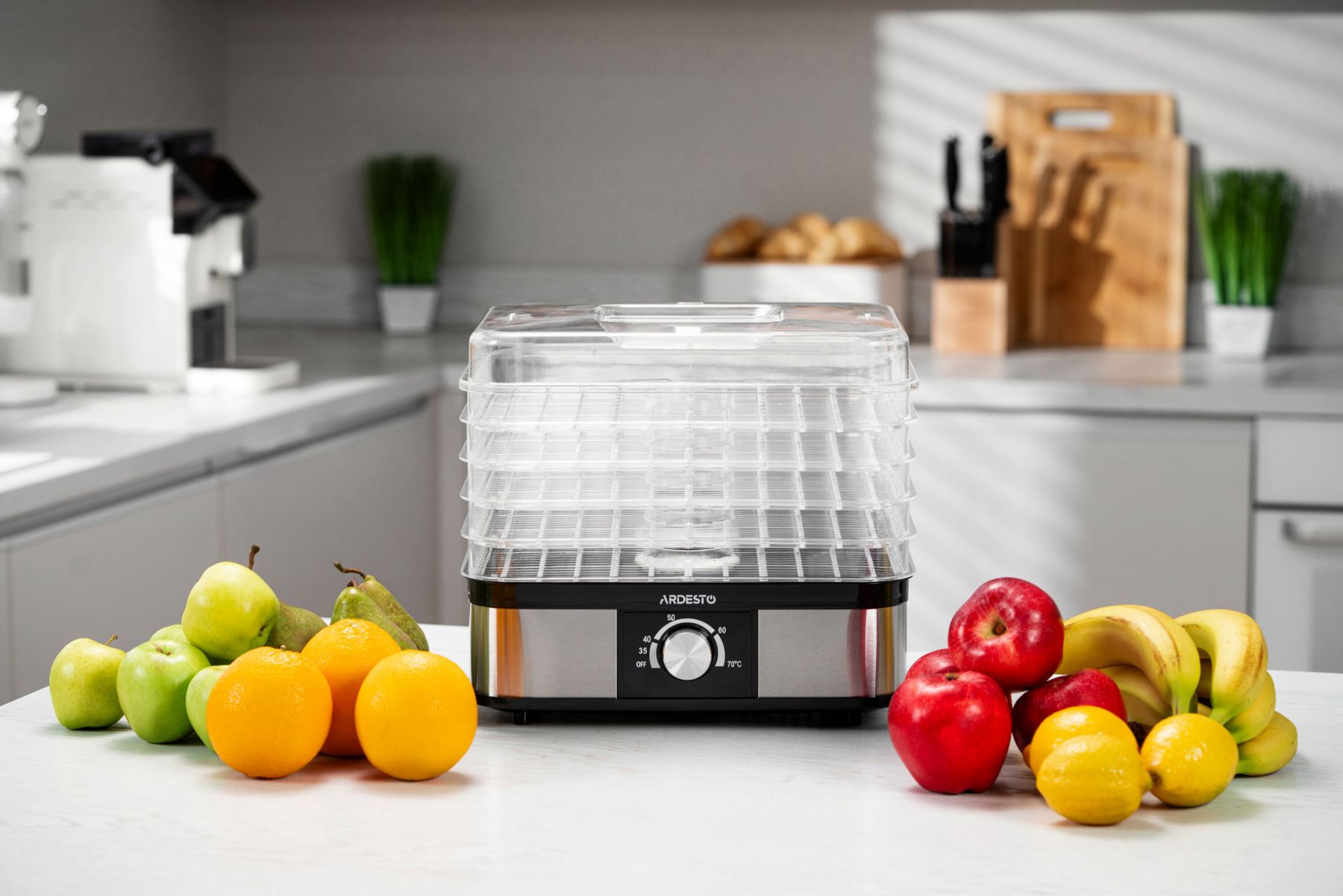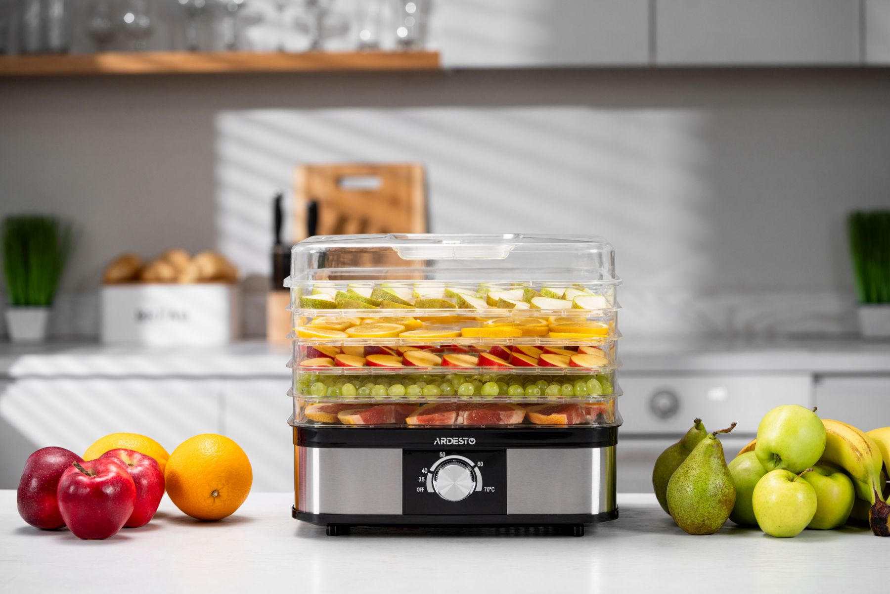 Сушарка для продуктів ARDESTO 245Вт, піддонів - 5x3см, макс - 70°С, пластик, чорний+нерж