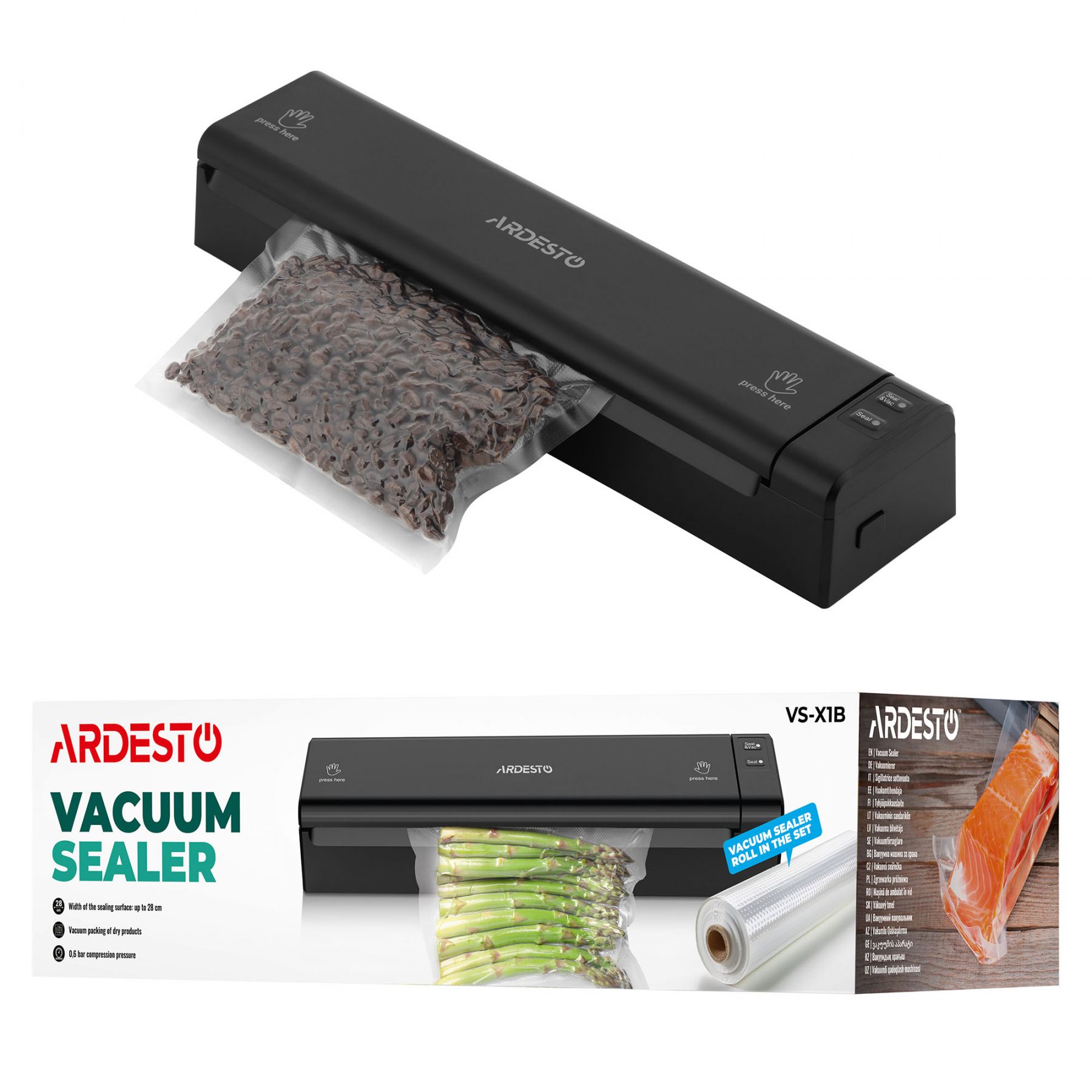 Вакууматор ARDESTO для пакетів та рулонів, 110Вт, 28см, електронне, + 1 рулон, пластик, чорний