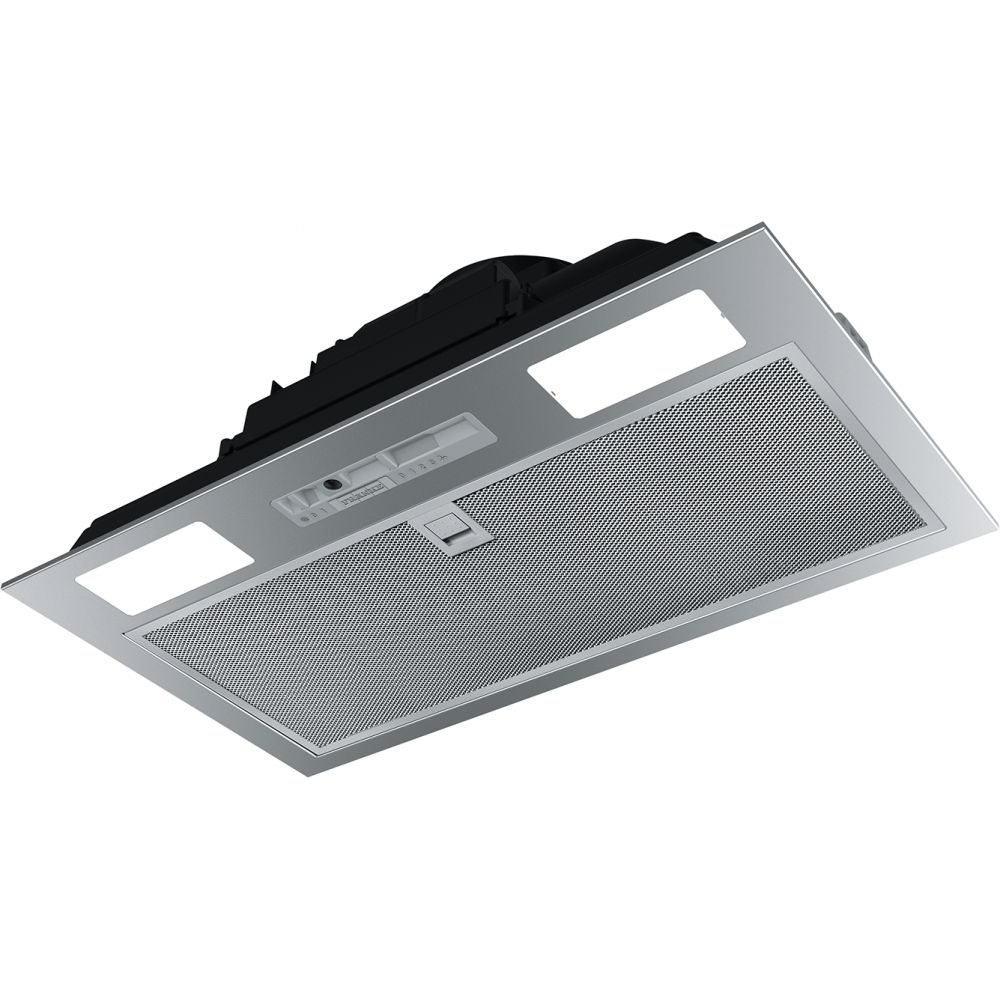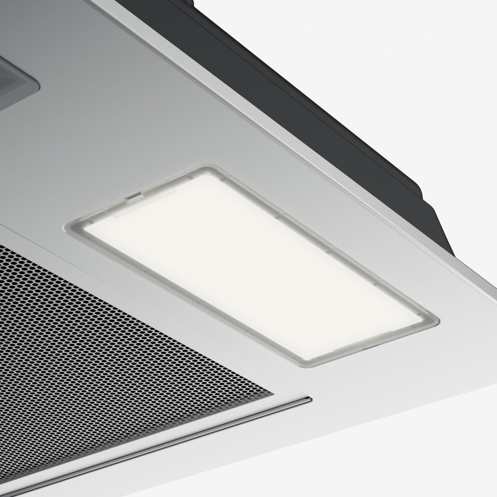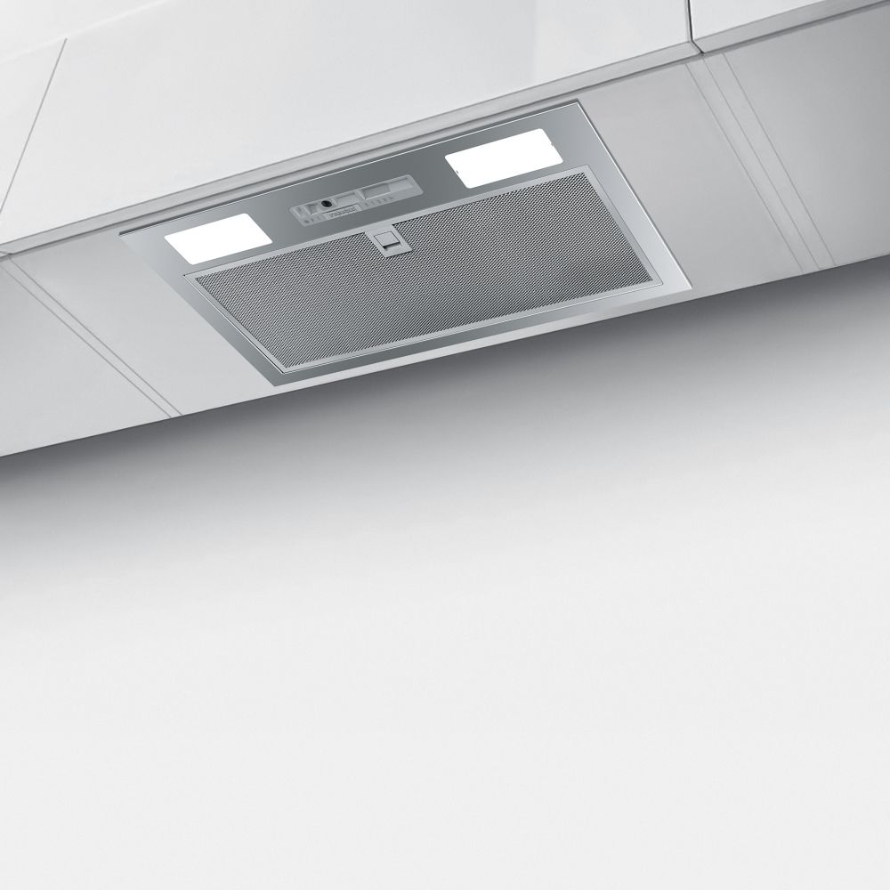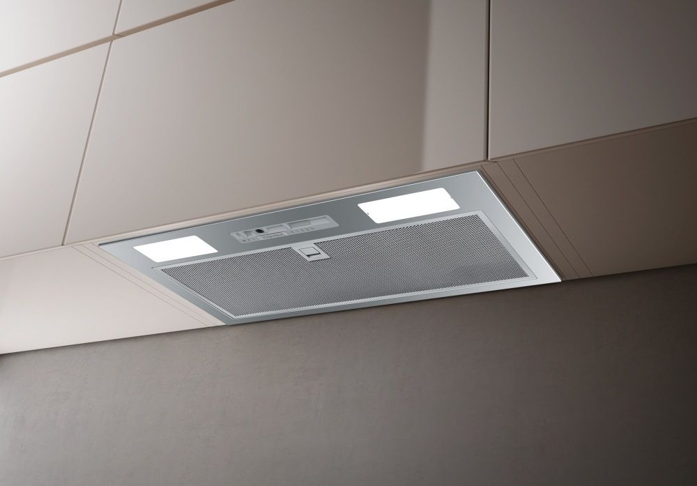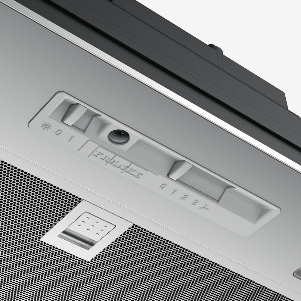 Витяжка Franke Inca Smart FBI 525 GR вбудовується в кухонну шафку шириною 52 см, залишаючись прихованою за фасадом. Три швидкості з механічним слайдером забезпечують продуктивність від 160 до 335 м³/год, достатню для невеликих кухонь до 13 м². Алюмінієві фільтри вловлюють жир, а два LED-світильники 4000 К створюють рівне освітлення варильної поверхні.
