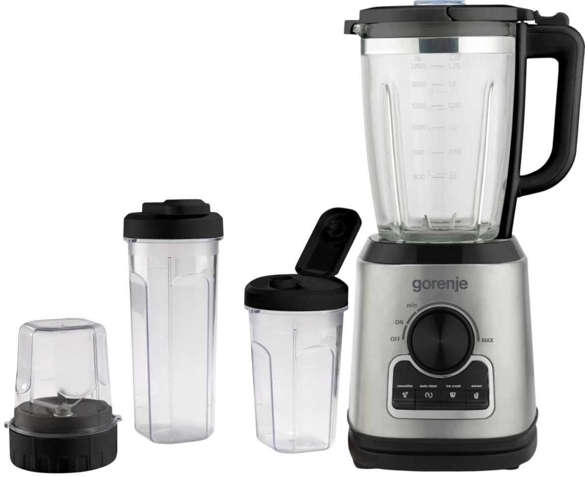 Блендер Gorenje стаціонарний 1400Вт, чаша-1750мл, додаткові ємкості, кавомолка, кришення льоду, приготування супу, імпульсний режим, метал