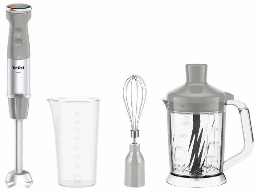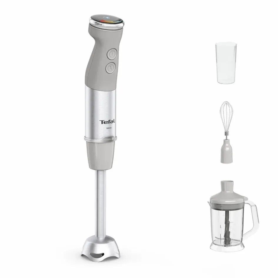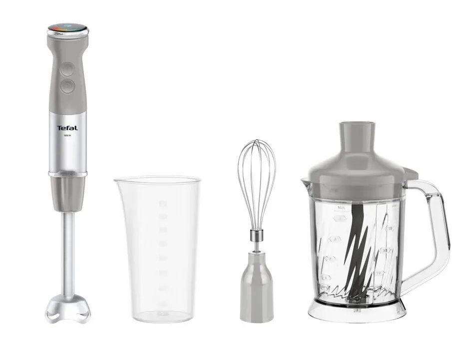 Блендер Tefal заглибний Quickchef+ 1000Вт, 3в1, чаша-800мл, чопер-1000мл, турборежим, сріблясто-сірий