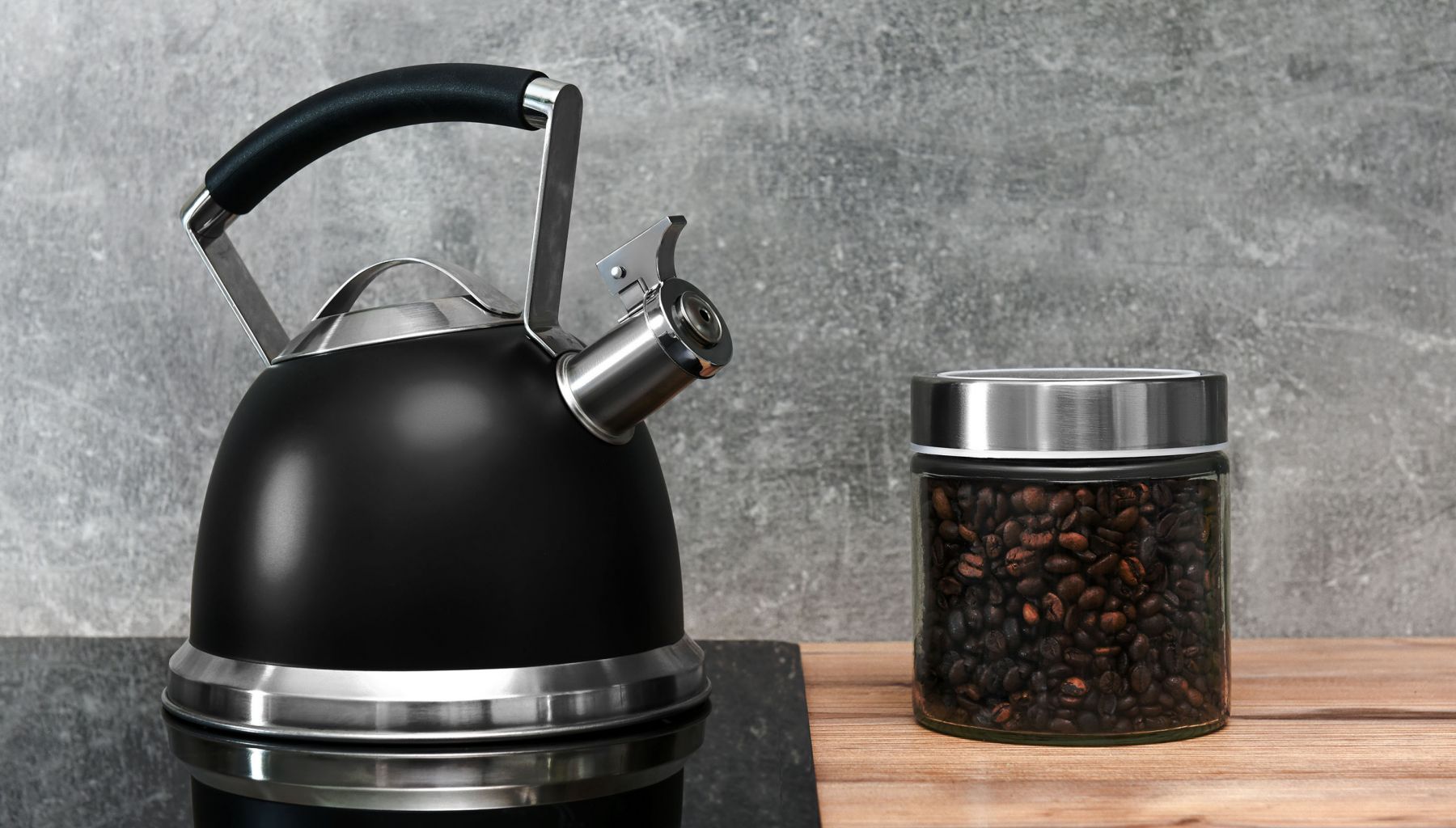 Чайник з нержавіючої сталі та покриттям чорного кольору. За рахунок капсульного дна, він сумісний з усіма видами плит, включаючи індукційну.
