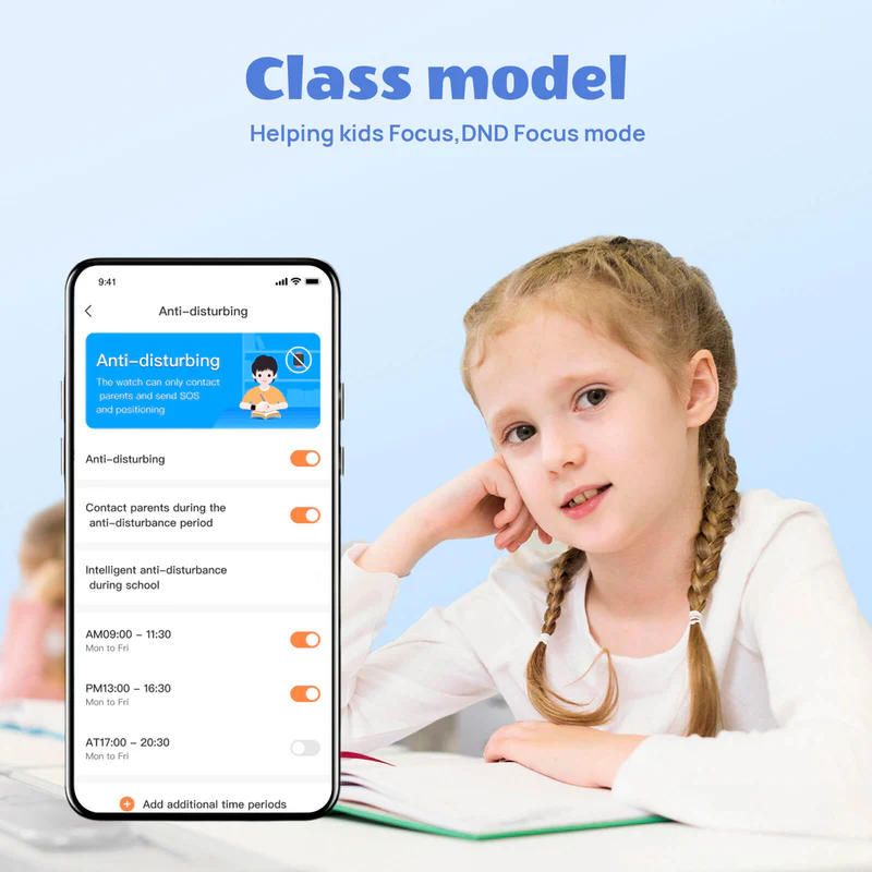 Функціонал:Будильник, Ліхтарик, Відеодзвінки, Роумінг, Альбом, Хмарний альбом, Погода, Розклад занять, Крокомір, Зміна циферблатів, Додавання друзів, Голосовий мікрочат (між годинниками), Сімейний груповий чат, Соціальна взаємодія між годинником і телефоном, Білий список SMS, Білий список викликів, Режим уроку (Не турбувати під час уроку)