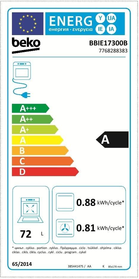 Духова шафа Beko електрична, 72л, A, дисплей, конвекція, чорний