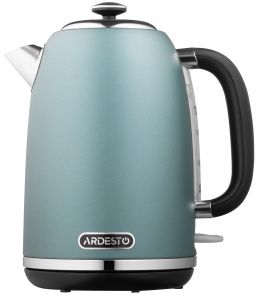 Електрочайник ARDESTO EKL-F400G трендового м’ятного кольору об’ємом 1,8 л потужністю 2 200 Вт. Виготовлено з міцного матеріалу – нержавіючої сталі. Модель оснащено британським контролером Strix. Підтримує функції автоматичного вимкнення у разі відсутності води та закипання. Має підставку, що обертається на 360°. Ергономічна ручка. Зручне зберігання шнура. Оснащений знімним фільтром від накипу. Має світловий індикатор на клавіші вимкнення.
