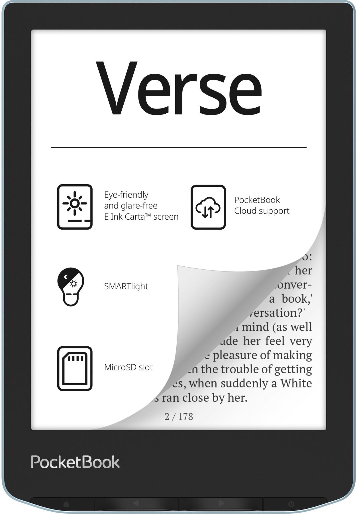 Рідер поєднує елегантний та лаконічний дизайн із привабливими кольорами Bright Blue або Mist Grey. PocketBook Verse – новий розділ комфортного електронного читання.
