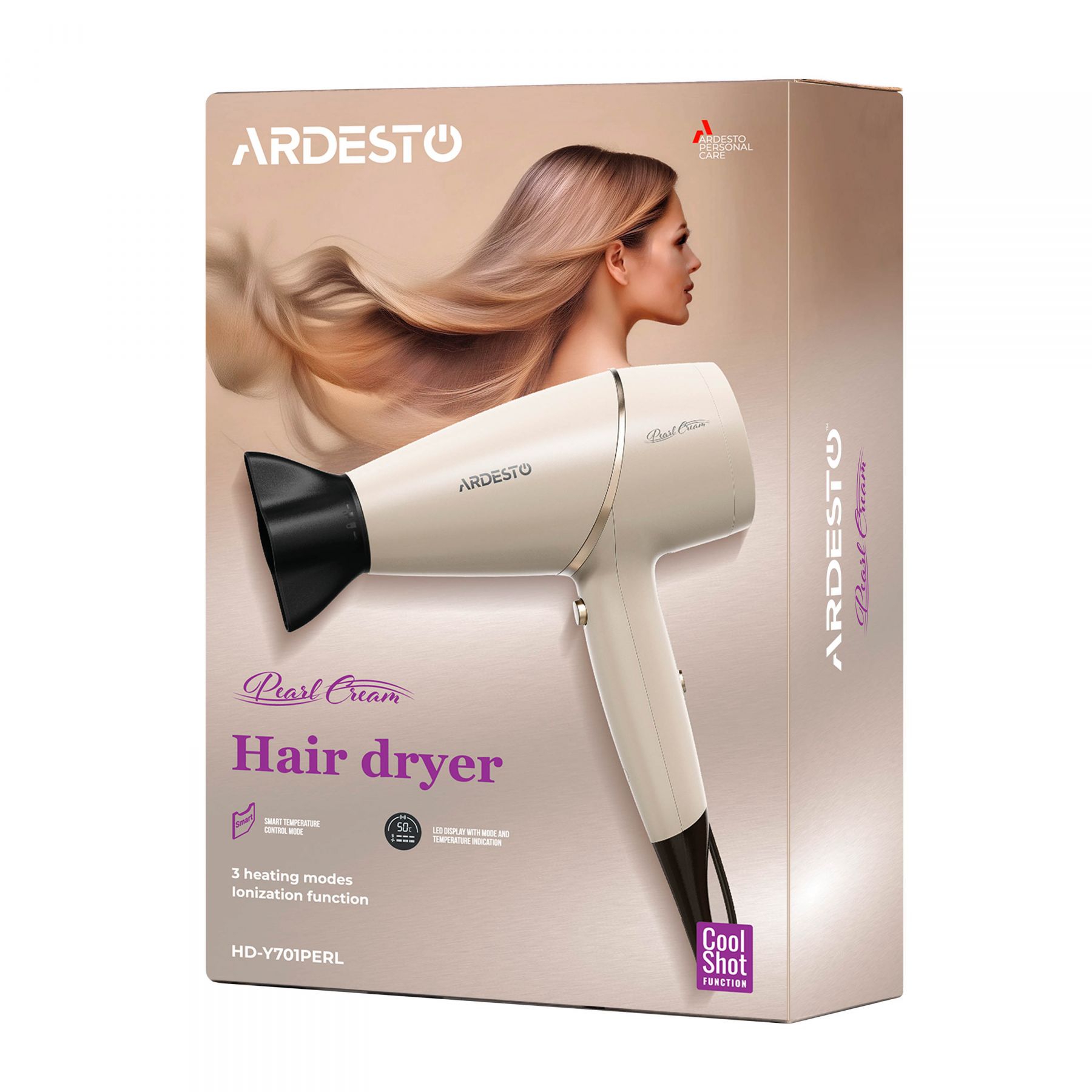 Фен ARDESTO Pearl Cream HD-Y701PERL, 1750-2100Вт, 3 швидкості, 3 темп.режими, бежевий