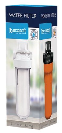 Фільтр магістральний Ecosoft 10", прозора колба, підключення 3/4, з поліпропіленовим картриджем