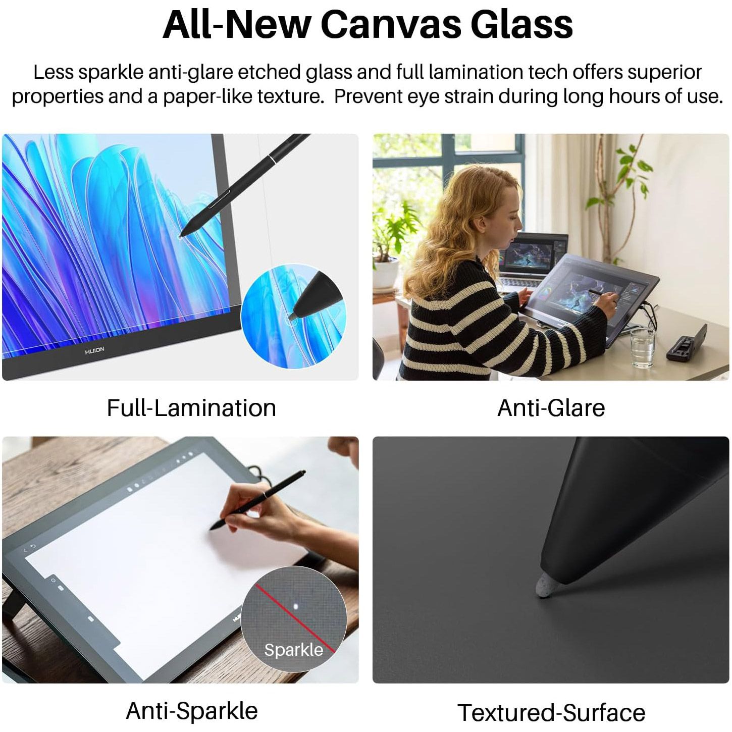 Створений як портативний 18,4-дюймовий дисплей з роздільною здатністю 4K UHD, Kamvas Pro 19 може похвалитися новаторською технологією Huion PenTech 4.0 і повністю новим Canvas Glass. Це надзвичайне поєднання не тільки дає можливість художникам втілювати свої творчі мрії, але й ефективно зберігає цінний робочий простір. Kamvas Pro 19 охоплює кілька колірних гамм, включаючи sRGB, Adobe RGB і DCI-P3, які поєднуються з 1,07 мільярда кольорів дисплея, щоб показати професіоналам більш детальне і плавне зображення.