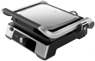 Oснащення:Антипригарне покриття, Індикатор роботи, Піддон для жиру, індикатор нагріву, Знімні пластини, Можна мити в посудомийній машині, регульований термостат, Регулювання положення пластин, Відкриття на 180°, Термоізольована ручка, Ребриста робоча поверхня