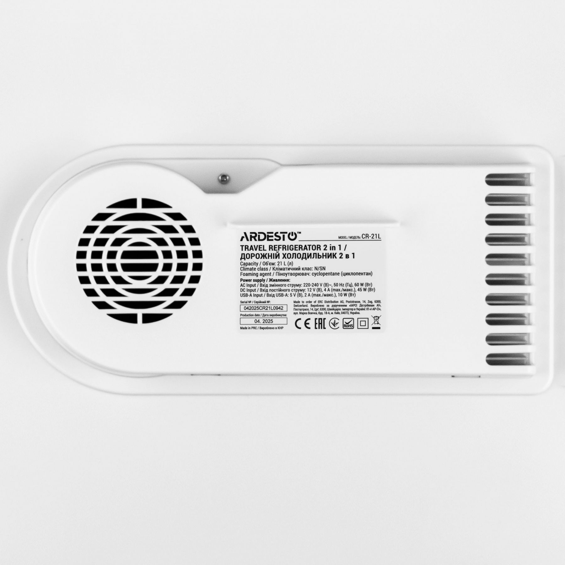 ARDESTO CB-21L – універсальний дорожній холодильник 2 в 1, що поєднує функції охолодження і підігріву. Місткість 21 л робить його зручним для подорожей і сімейного відпочинку. Завдяки елементу Пельтьє пристрій охолоджує вміст на 18–20 °C нижче температури довкілля або нагріває до 55 °C, а світлові індикатори відображають активний режим. Живлення можливе від мережі 12 В або 220–240 В. Модель вирізняється низьким рівнем шуму (до 26 дБ) і легкою конструкцією (4,3 кг), має ергономічне руків’я з фіксацією кришки. У разі знеструмлення холодильник слугуватиме корисним резервним рішенням для тимчасового збереження продуктів завдяки ефективній ізоляції та можливості живлення від Power Bank або автомобіля.