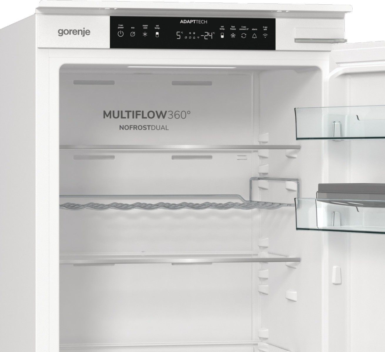 Вбудований холодильник Gorenje NRKI517E61WF із нижньою морозильною камерою має корисний об’єм 252 л та висоту 177 см. Оснащений системою NoFrost Plus, циркуляцією Multi Air Flow та адаптивним охолодженням AdaptTech. Передбачені зона свіжості, функція ConvertActive і електронне керування з LED-дисплеєм. Підтримується вбудоване Wi-Fi з’єднання.