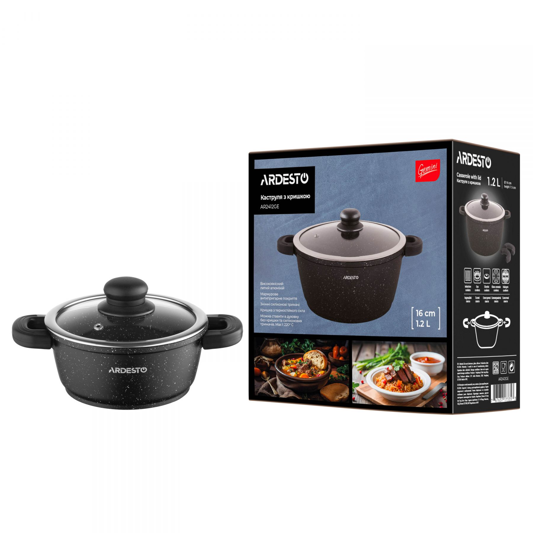Каструля зі скляною кришкою Ardesto Gemini Anzio, 1.2л, алюміній, чорний