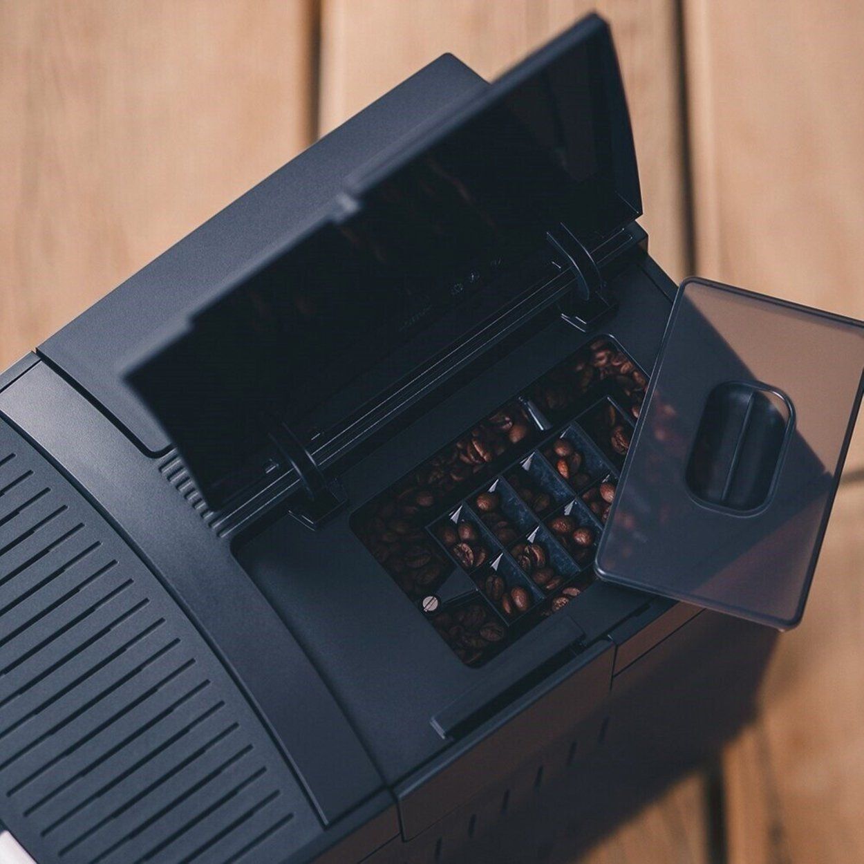 Особливості:вибір обсягу порції, відсік для зберігання шнура, З контейнером для меленої кави, Еко-режим, знімний заварювальний блок, місце під фільтр для води, герметична кришка контейнеру для зерен для зберігання аромату, ролики для переміщення машини, конічний млин із загартованої нержавіючої сталі, програми очищення, промивання та видалення накипу одним натисканням кнопки