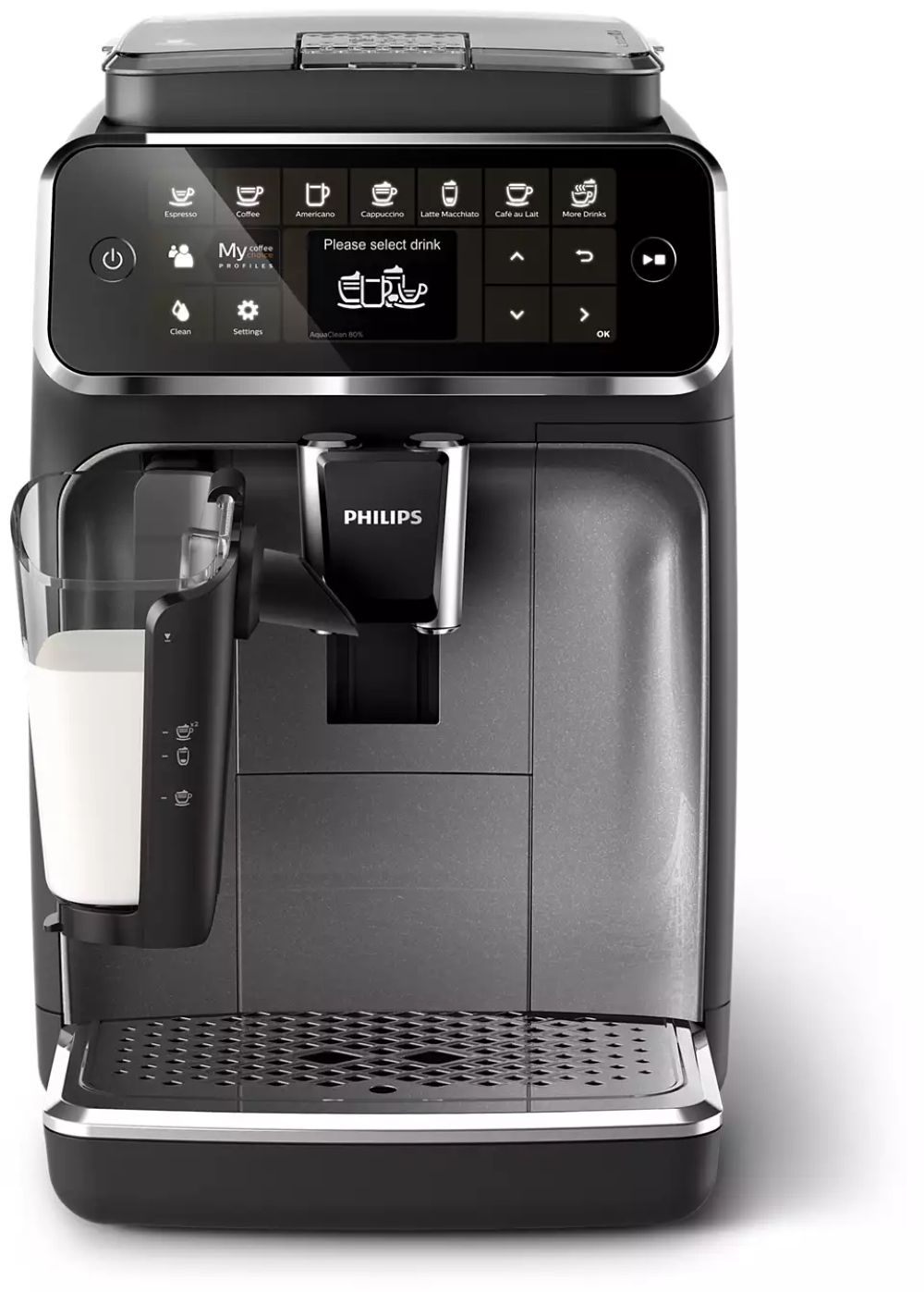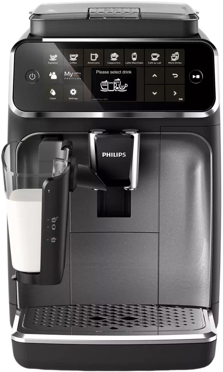 Кавомашина Philips Series 4300 LatteGo, 1.9л, зерно+мелена, автомат.капуч, дисплей, авторецептів -8, чорний