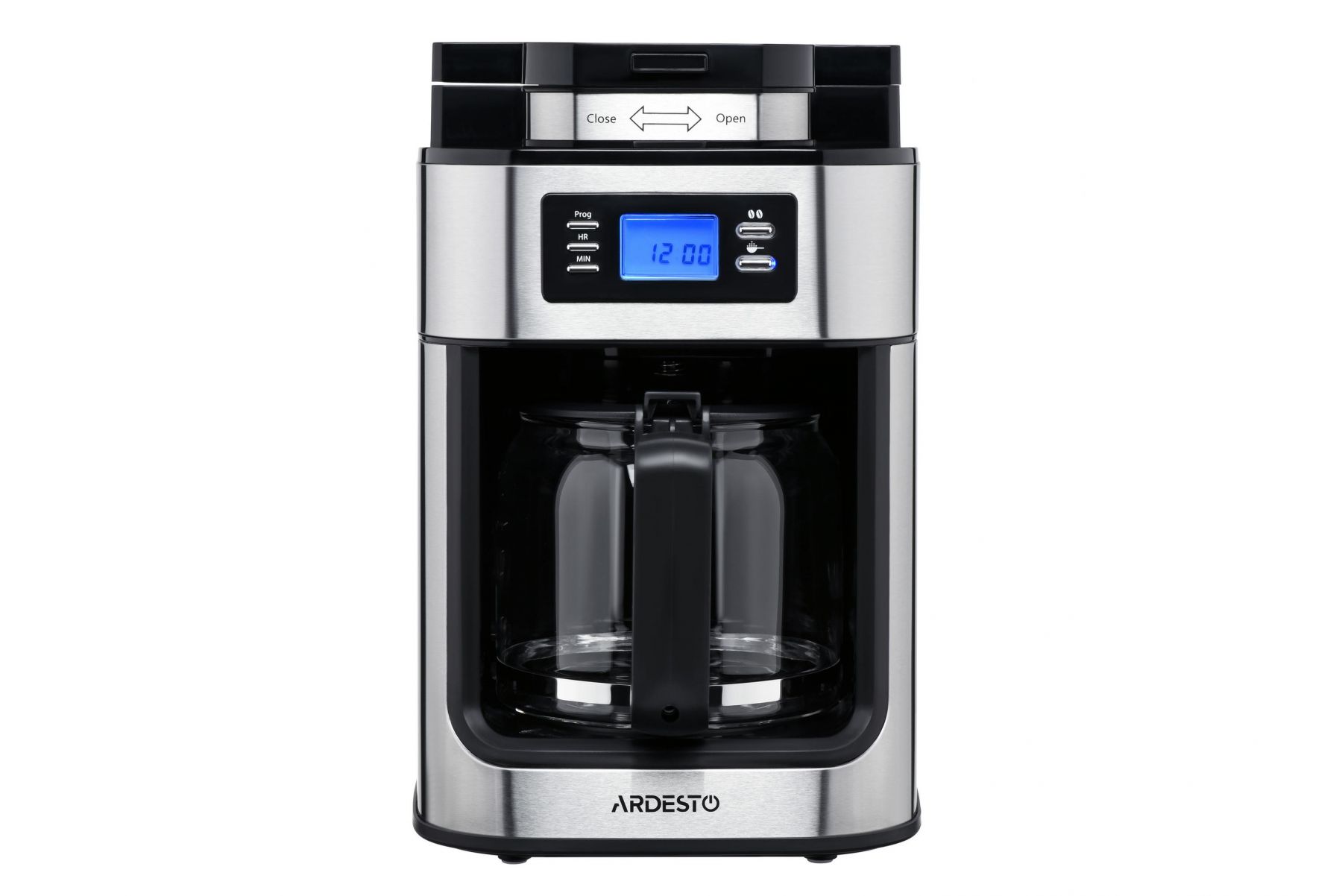 Кавоварка ARDESTO крапельна Steel Collection 1.2л, зерно + мелена, дисплей, сріблясто-чорний