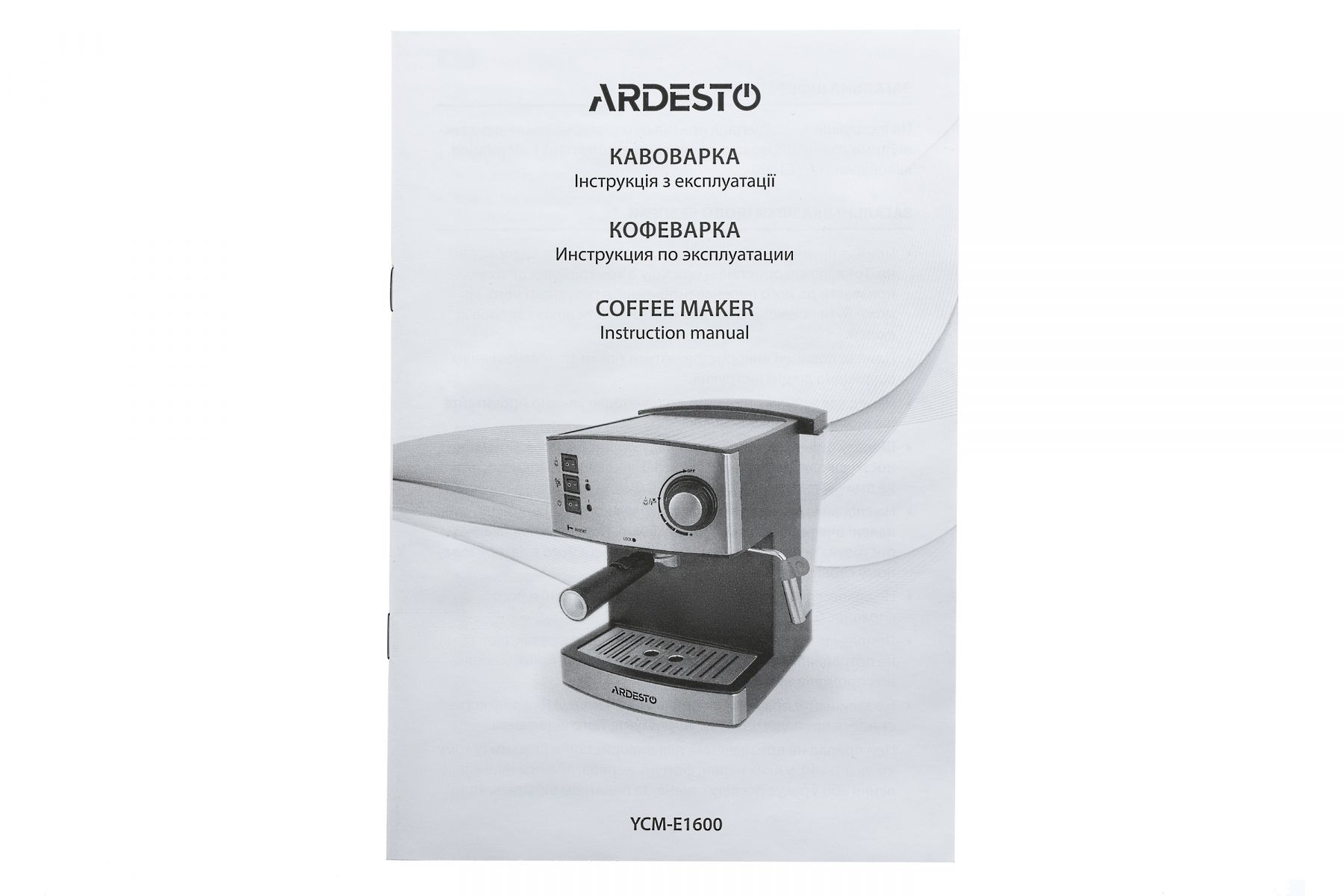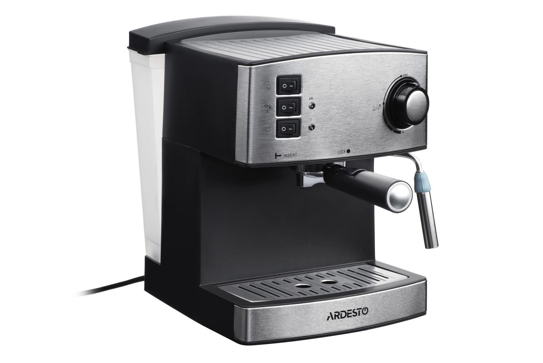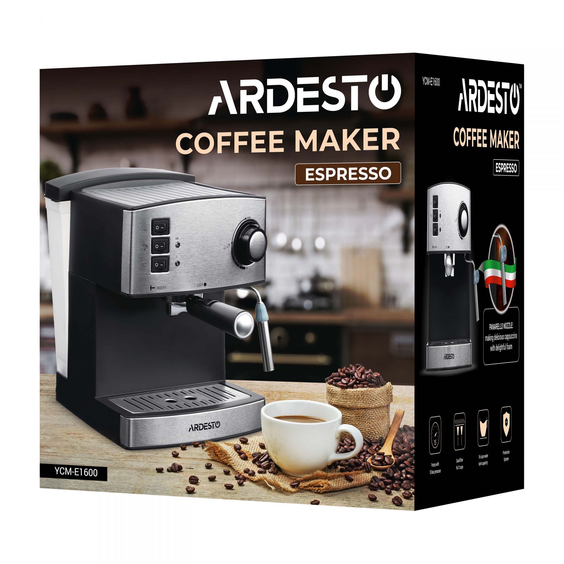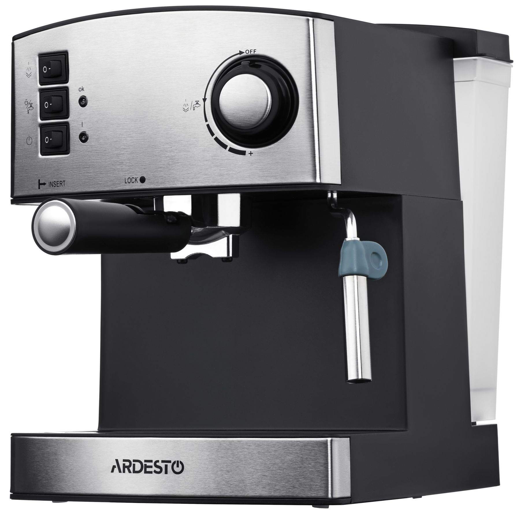 Кавоварка ARDESTO ріжкова Steel Collection 1.6л, мелена, ручний капучинатор, сріблясто-чорний