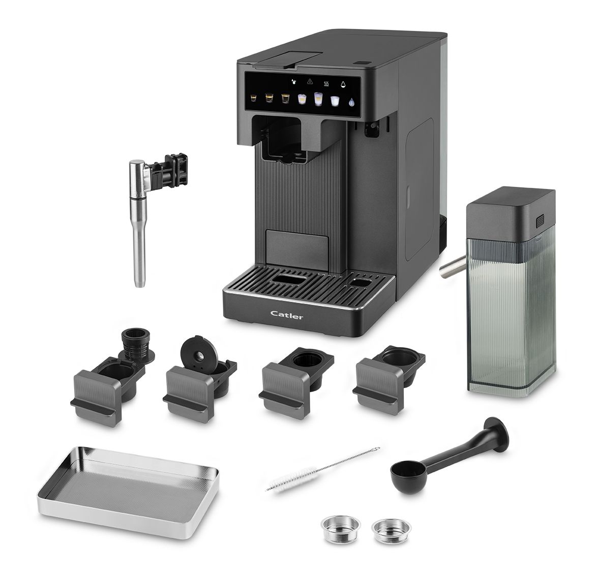 Кавоварка Catler капсульна Renzo 1.6л, капсули, мелена кава, сенсорне керування, автоматичний капучинатор, сірий
