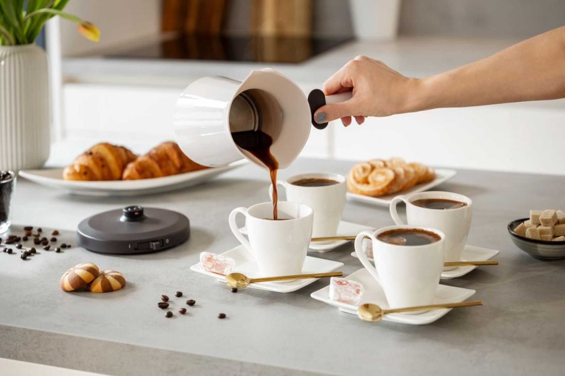 Кавоварка Gorenje TCM350W (електротурка) готує до 4 чашок турецької кави за раз. Об’єм 0,35 л, потужність 800 Вт, поворотна база 360°, подвійний носик, легке очищення, відсік для шнура та захист від перегрівання.