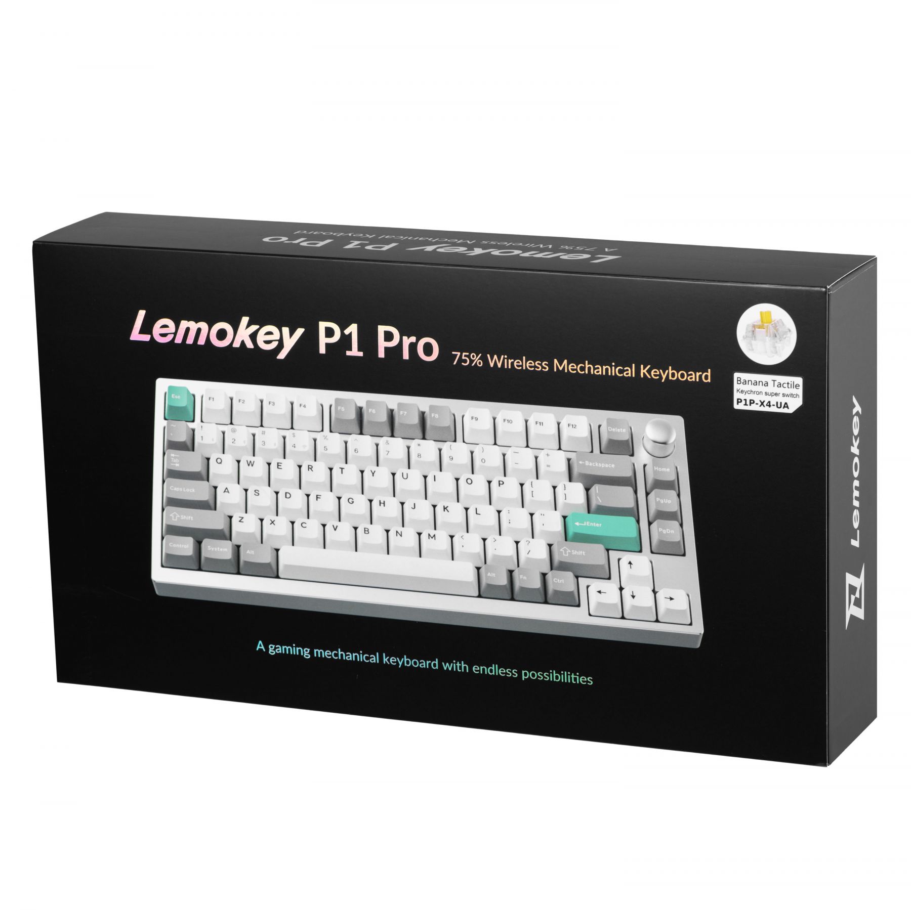 Клавіатура механічна Lemokey P1 Pro 84Key, Keychron Super Banana, WL/BT/USB-A, QMK/VIA, Hot-Swap, EN/UKR, RGB, Knob, Space Silver