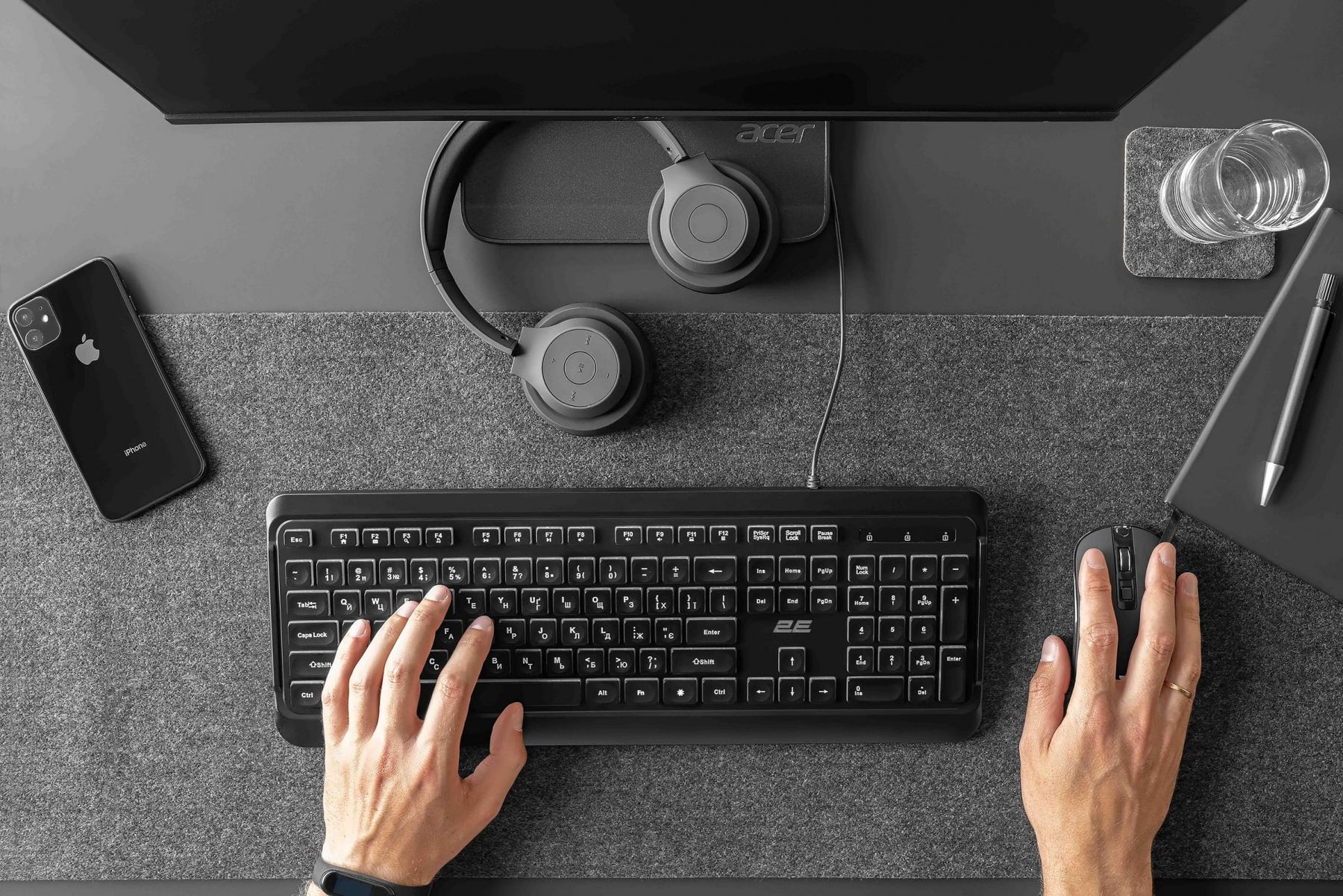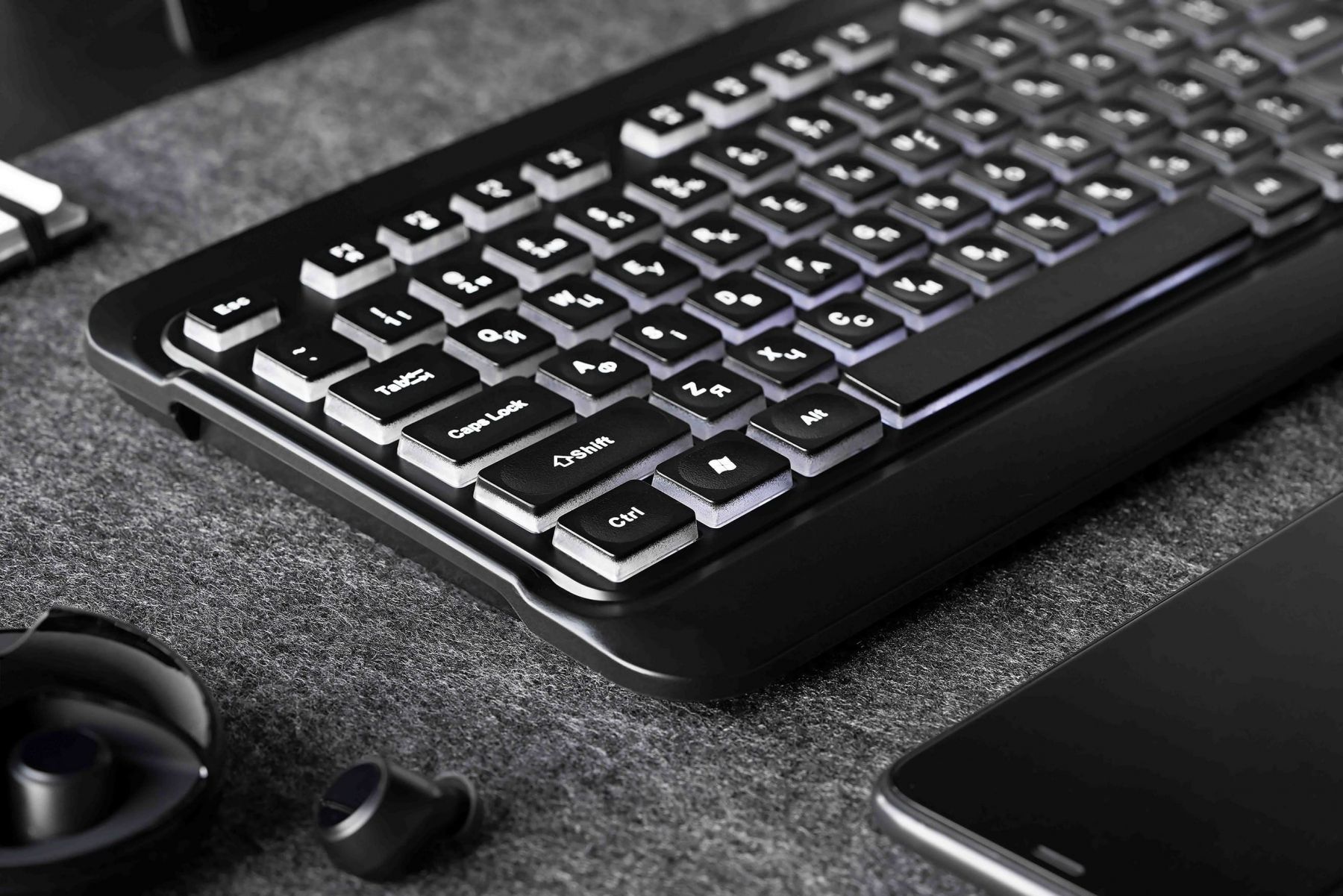 Клавіатура ідеально підходить для домашнього використання, адже з нею легко працювати вдень та вночі завдяки підсвічуванню клавіш білим м’яким кольором. 12 мультимедійних клавіш додадуть додаткового комфорту під час переглядів фільмів чи прослуховування музики. А оригінальна ергономічна форма клавіш створена для тривалого використання.