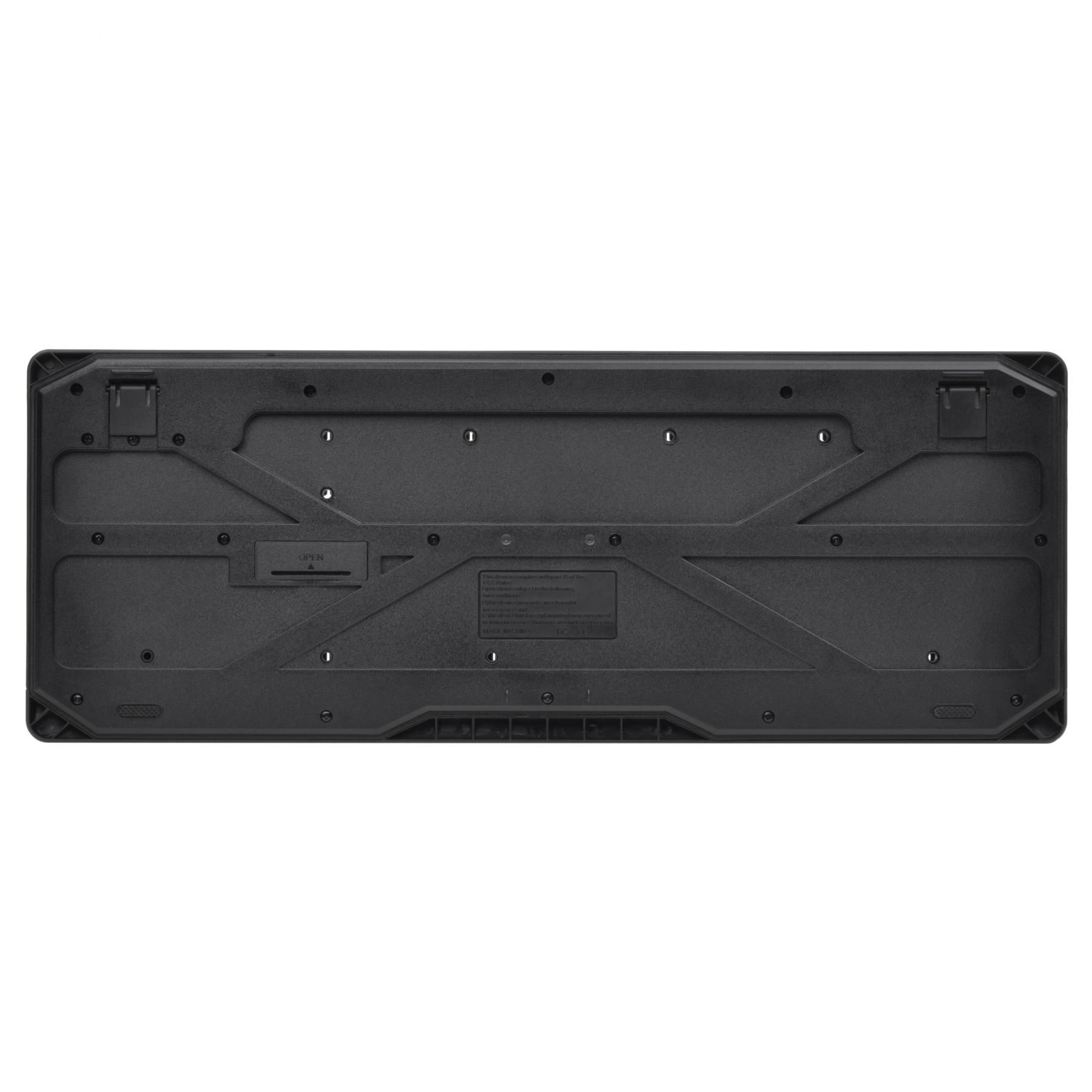 Бездротовий комплект складається з повнорозмірної клавіатури, яка оснащена рядом функціональних клавіш та маніпулятора з симетричною формою.