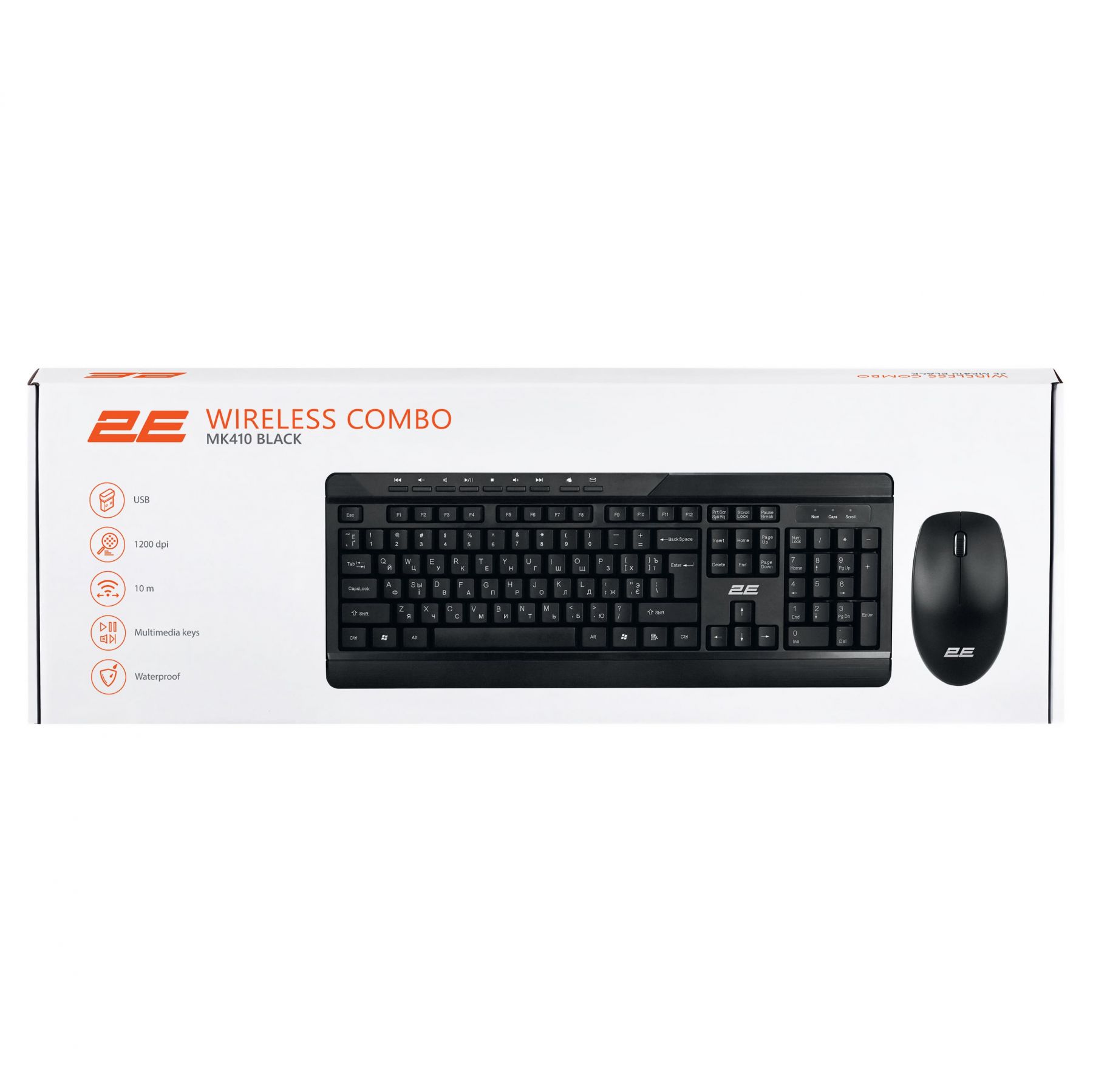 Комплект клавіатура та миша 2E MK410 WL, EN/UK/RU, чорний