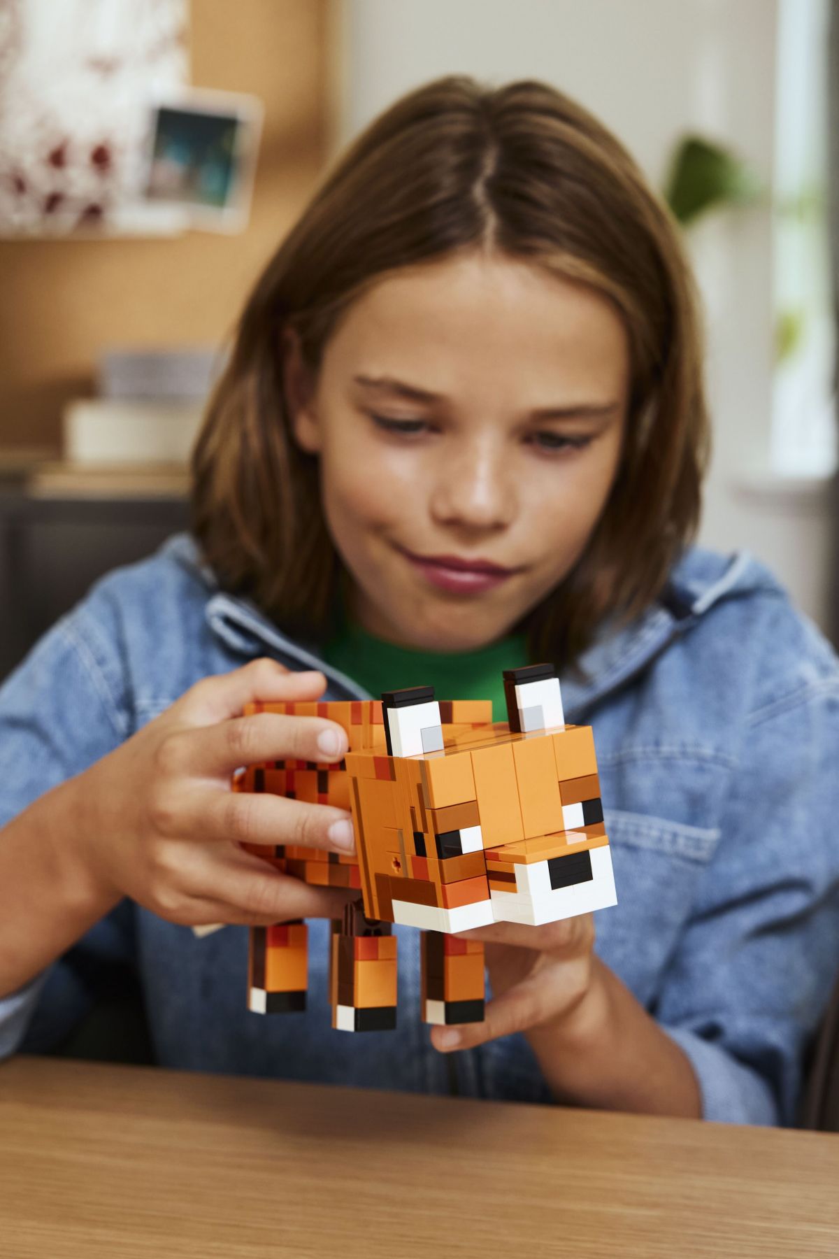 Конструктор LEGO Minecraft Лисиця 21588 створює тривимірну модель лисиці з культового світу Minecraft із рухомими частинами для різних поз. Модель має регульовані ноги, шию й голову, а також змінний вигляд очей для різних сцен. Процес складання поєднує класичний LEGO-дизайн і елементи гри, знайомі з відеоігри. Цей набір підходить для збирання й демонстрації в кімнаті або гру як окремий обʼєкт.