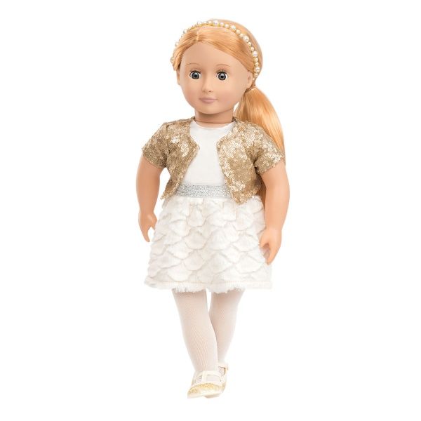 Хоуп обожнює елегантні образи та витончений стиль. Її світле довге волосся прикрашає ніжна прикраса з перлами. У наборі з лялькою: взуття, сукня, нижня білизна, колготи, прикраса для волосся та жакет. Від інших ляльок колекції Our Generation Хоуп відрізняє тонкий смак та вишукані манери, адже вона – справжня леді. Висота лялечки Хоуп 46 см. Увесь одяг виготовлений з якісного текстилю, та є абсолютно безпечним для малюка. Лялька чудово доповнить колекцію іграшок від Our Generation, а також відмінно поєднується з наборами аксесуарів бренда. Рекомендований вік: 3+