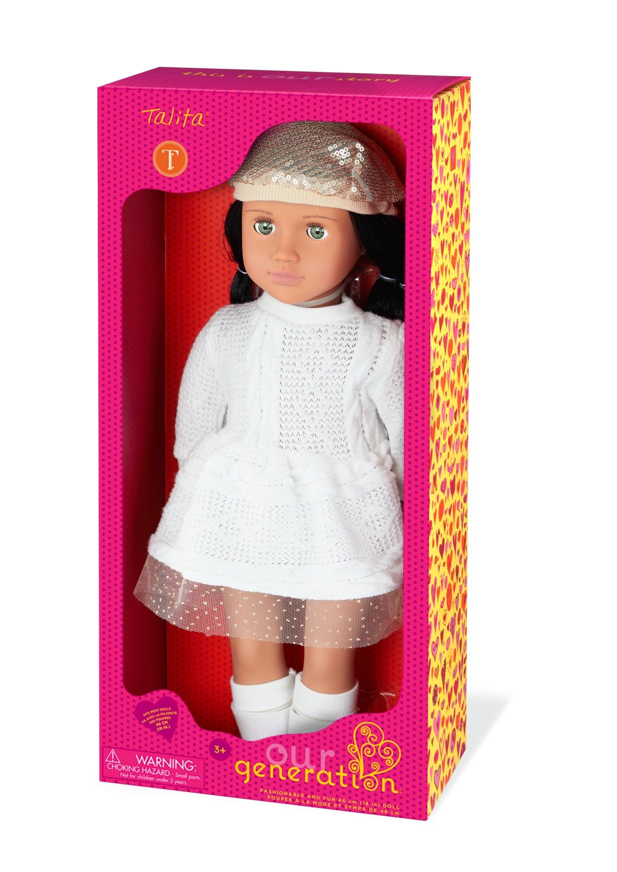 Лялька Таліта з серії Our Generation – це справжня леді, яка має гарне виховання та чудовий характер. Граючи з лялькою, дитина вчиться бути вихованою та стриманою. Вона стане чудовим подарунком для маленької леді. Лялечка виготовлена з вінілу та має м’яке наповнення. Висота ляльки 46 см. Рекомендований вік : 3+.