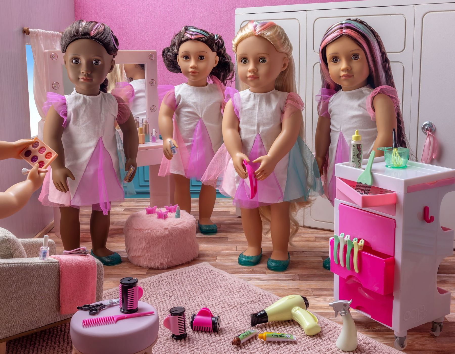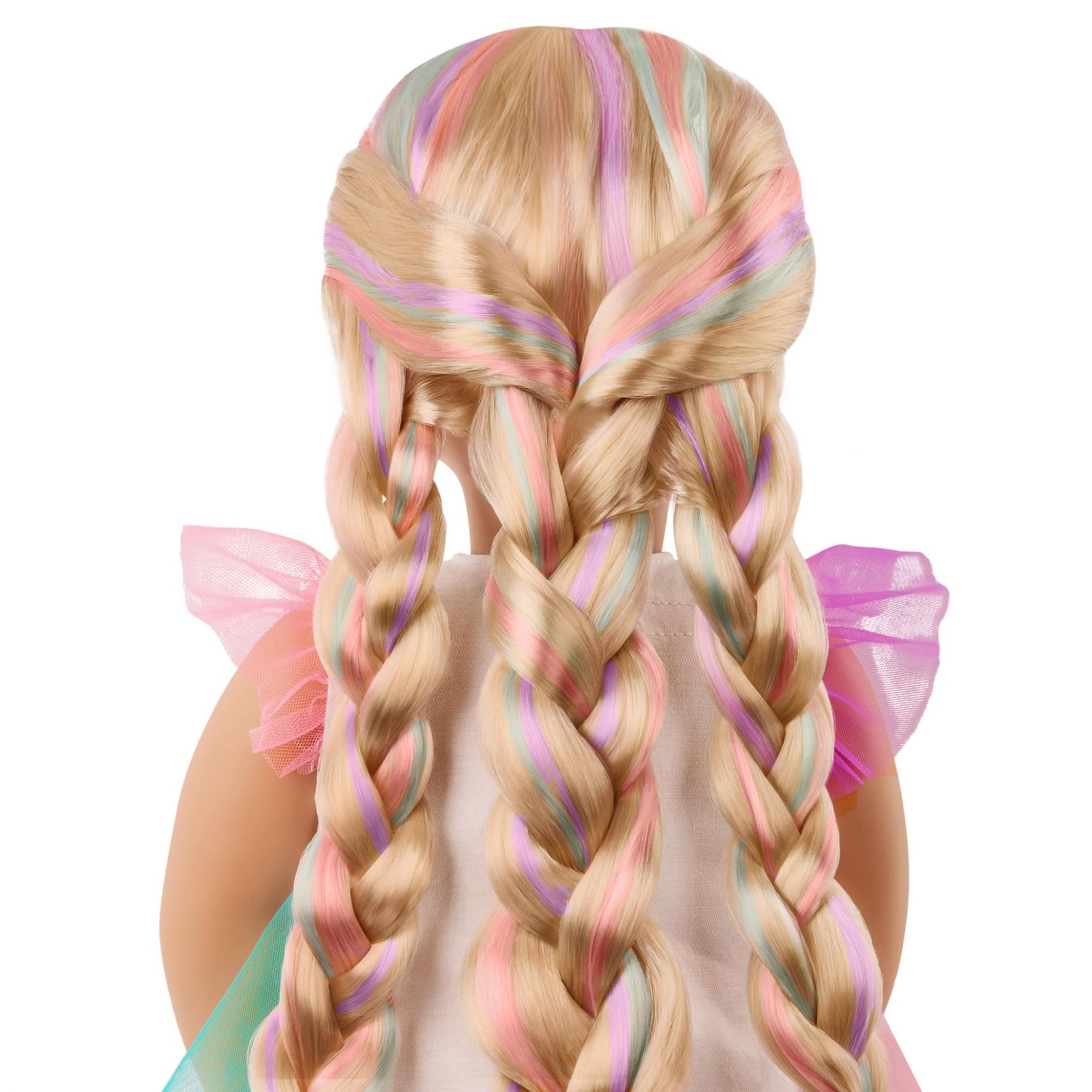 Заплітай, грай та створюй казкові зачіски разом із Тессі від Our Generation! Ця яскрава 46-сантиметрова лялька має неймовірне веселкове волосся, яке можна укладати, прикрашати та навіть подовжувати або вкорочувати натисканням однієї кнопки! Тессі — справжня зірка зачісок, яка надихне дітей на творчість і самовираження.