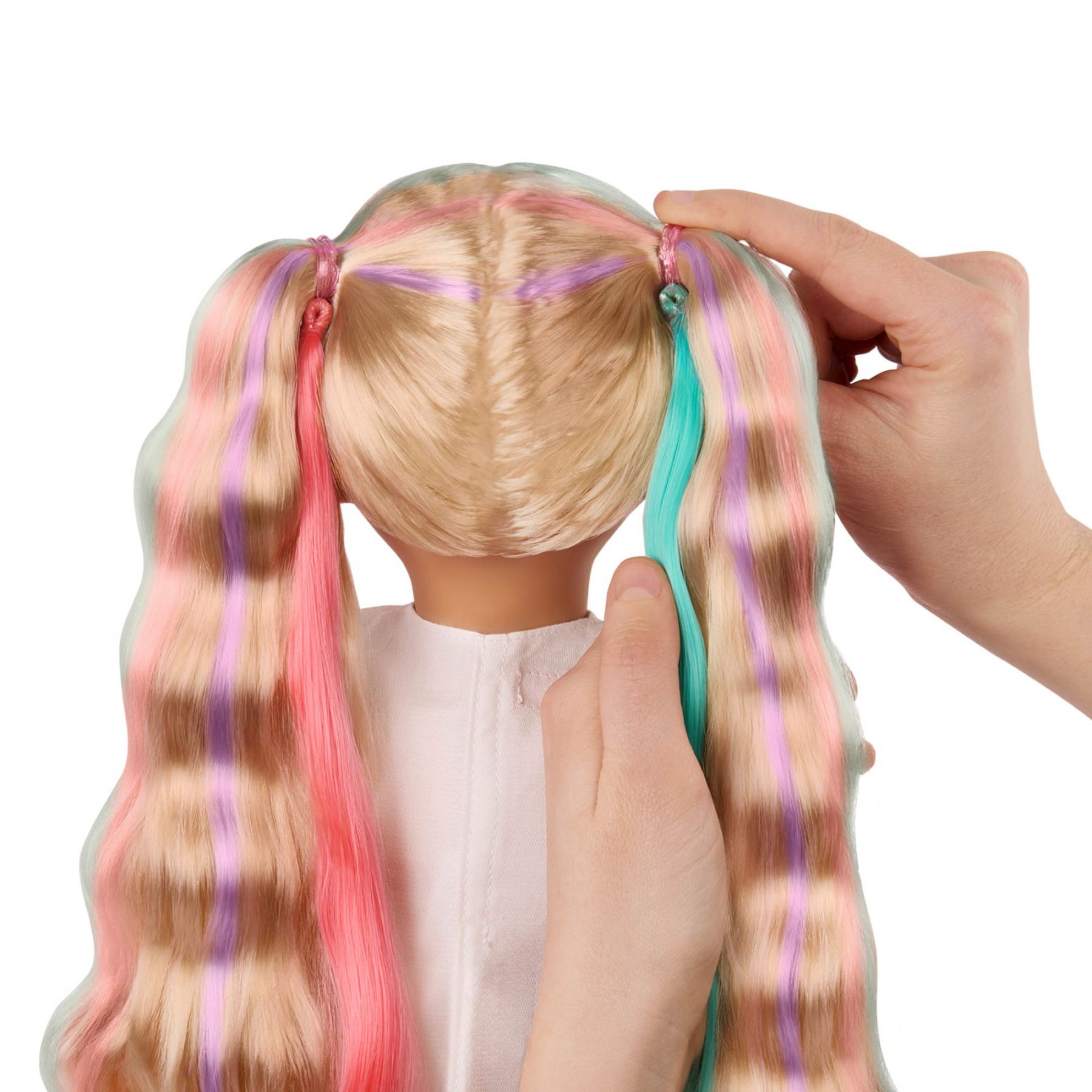 Комплектація:лялька, пара взуття, нижня білизна, сукня, гребінець, 2 заколки для волосся, 2 кольорові накладні пасма, посібник із зачіски з 4 образами