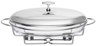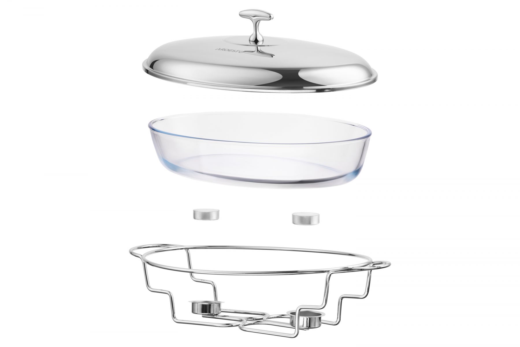 Овальний марміт ARDESTO вироблено з прозорого термостійкого скла, а кришка та підставка – із нержавіючої сталі. Об’єму 3 л цілком достатньо для приготування великих порцій, а щоби подана страва довше залишалася теплою, передбачено підсвічник для однієї свічки (є в комплекті). Діапазон термостійкості – від -40 до +400 °C, тож скляна ємність придатна до використання в мікрохвильовій печі чи духовій шафі. Догляд за виробом не спричине складнощів, адже ємність допустимо мити в посудомийній машині, щоправда, без кришки та підставки.