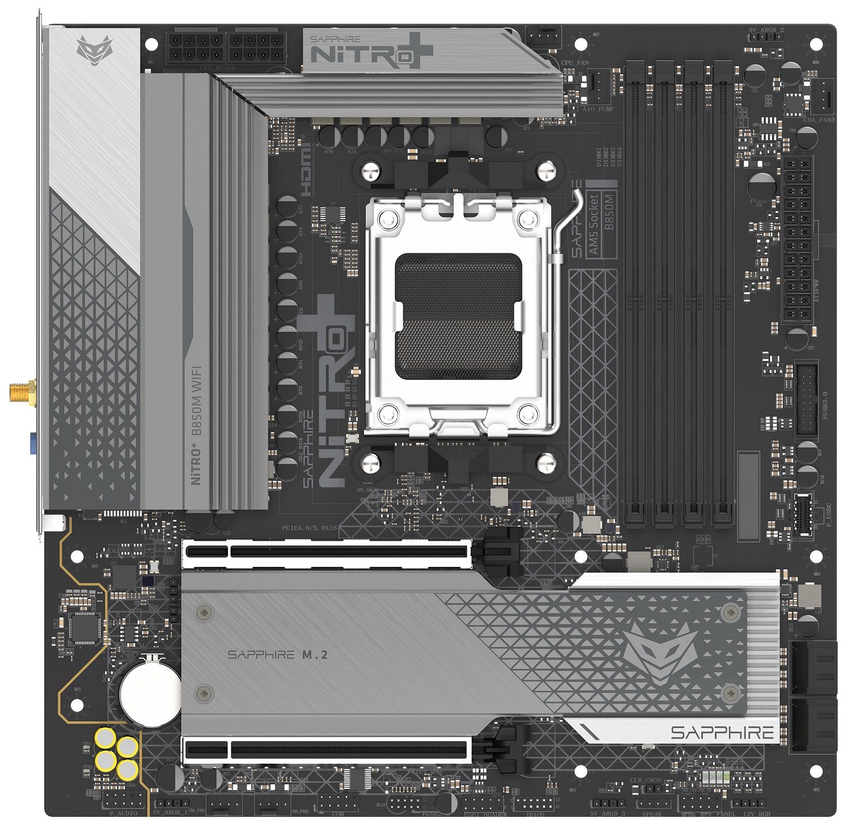 Материнcька плата SAPPHIRE NITRO+ B850M WIFI sAM5 B850 4xDDR5 M.2 HDMI DP Wi-Fi BT mATX