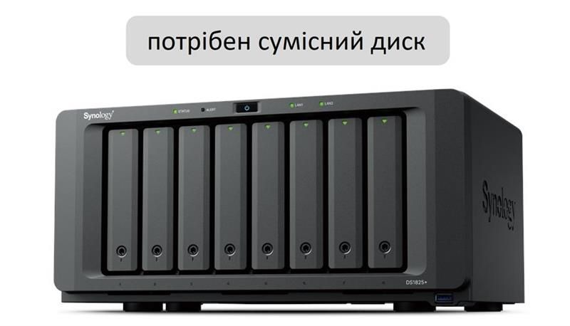 Synology DiskStation DS1825+ — це потужне настільне NAS-сховище з вісьмома відсіками, побудоване на базі процесора AMD Ryzen V1500B. Воно забезпечує високу швидкість роботи, підтримку SSD-кешу NVMe M.2 і масштабування до 18 дисків. Пристрій поєднує надійність, продуктивність і зручність керування через Synology DSM. Ідеальний вибір для офісів, студій і приватних хмарних систем.