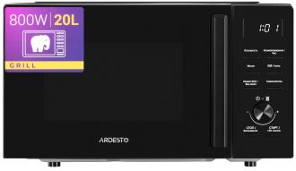 Мікрохвильова піч ARDESTO, 20л, електр.керув., 800Вт, гриль, дисплей, відкр.ручкою, чорний