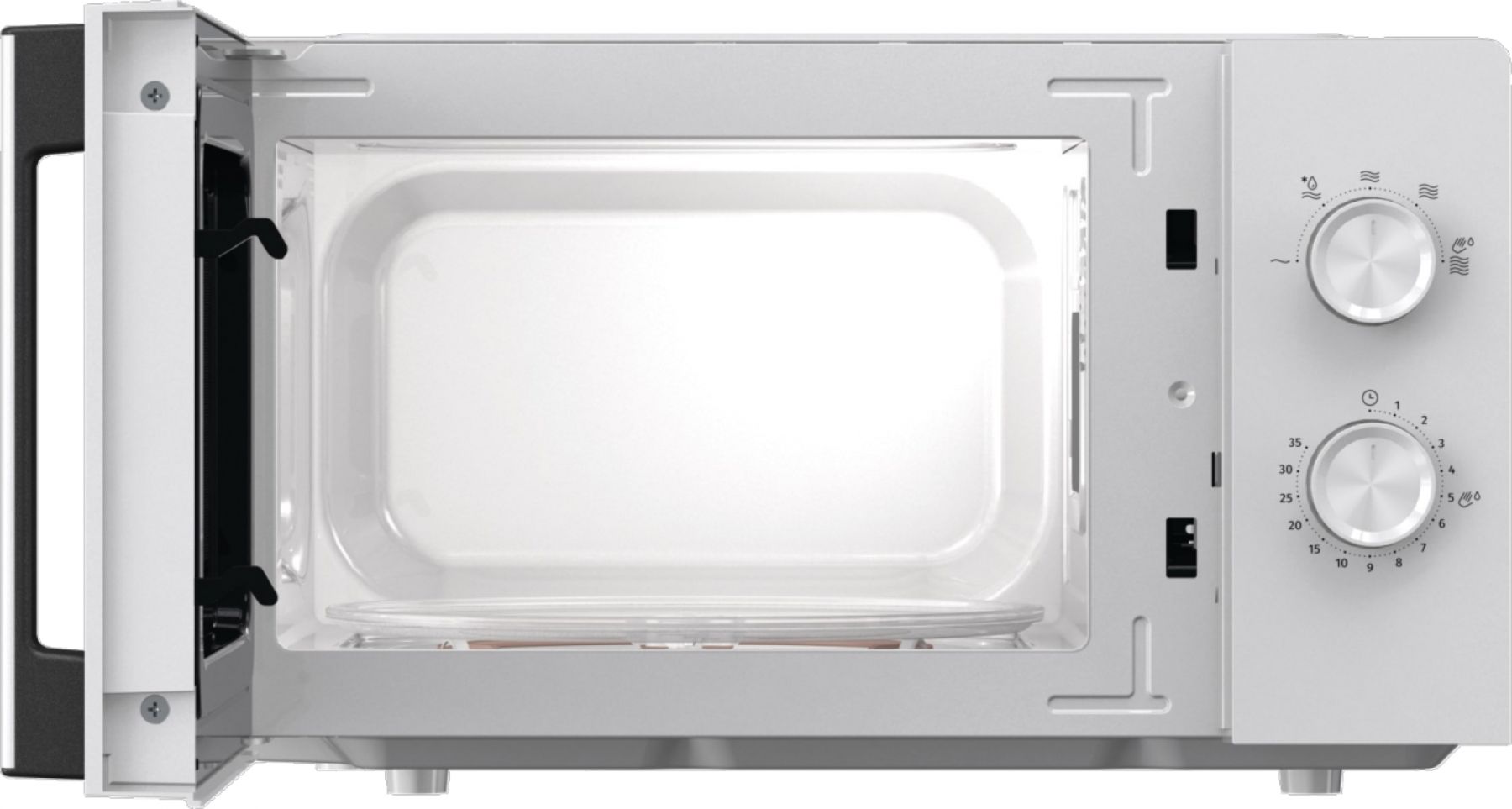 Мікрохвильова піч Gorenje MO20E1W має об’єм 20 л і потужність 800 Вт. Оснащена механічним управлінням з поворотними ручками, 5 рівнями потужності та таймером до 35 хв. Має функції розморожування, комбінованого нагріву та очищення AquaClean. Внутрішня поверхня – емаль, тарілка діаметром 27 см.