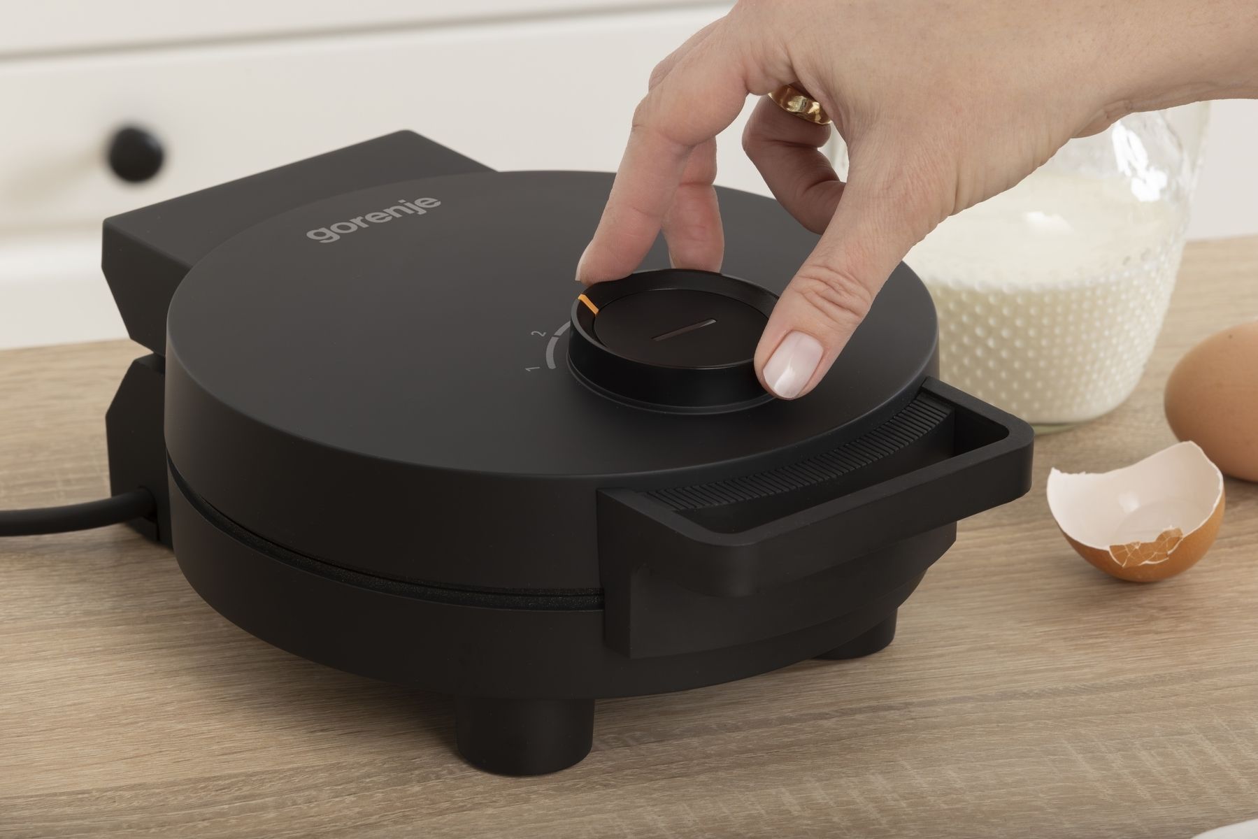 Міні-гриль Gorenje 1000Вт, алюміній, пластина д/вафель, корпус-метал, чорний