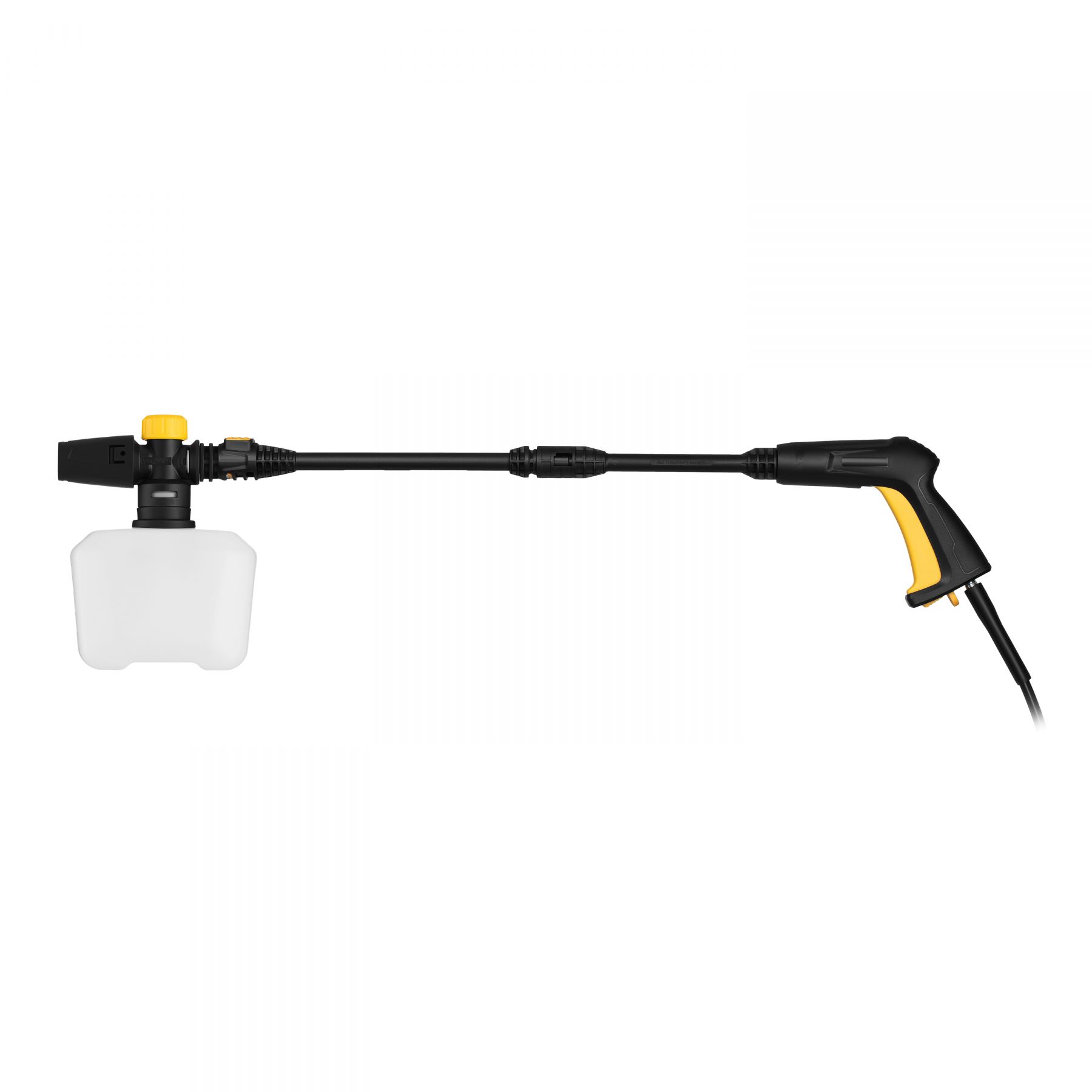 Комплектація:Сопло, шланг високого тиску, подовжувач, пістолет, Піноутворювач, турбо сопло, щілинна насадка, мінімийка високого тиску, колеса, гілка для чищення сопла, фільтр для води, шланг пилососа, щітка для вологого прибирання, ємність для пилу, HEPA фільтр