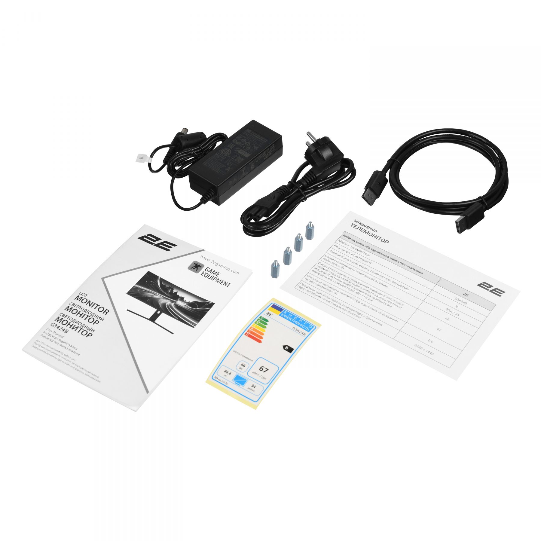 Монітор 2E GAMING 34" G3424B 2xHDMI, DP, VA, 3440x1440, 180Hz, 1ms, NTSC 85%, CURVED, FreeSync, HAS