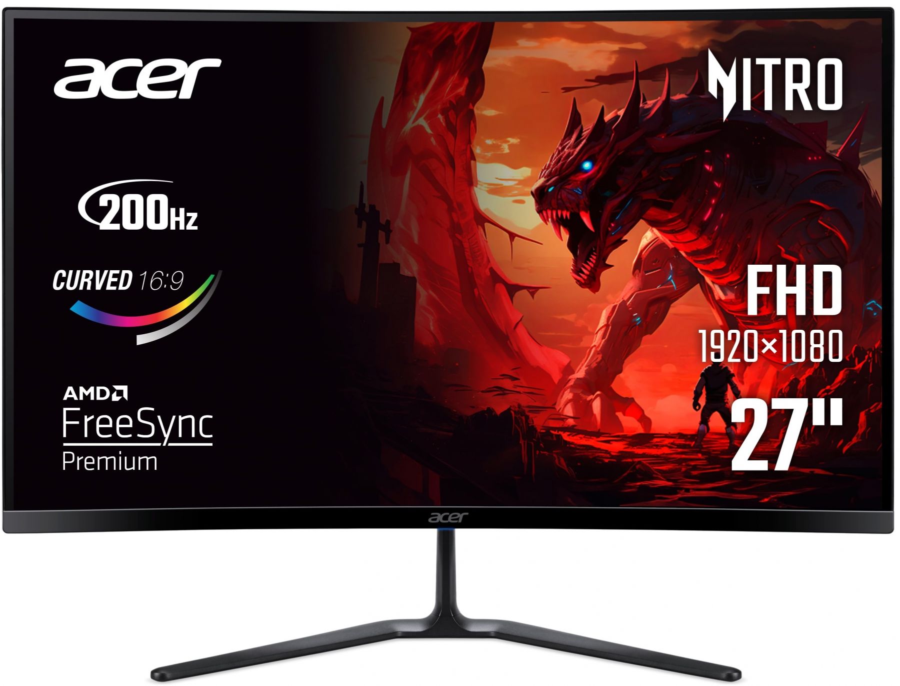 Acer ED270X0biip (UM.HE0EE.001) — 27-дюймовий вигнутий VA-монітор Full HD (1920×1080) з частотою 200 Гц, відгуком 1 мс і AMD FreeSync Premium. Кривина 1500R і справжній глибокий чорний колір VA-панелі створюють сильне занурення в ігри та фільми. 200 Гц при Full HD — це надплавність за дуже доступною ціною. Є 2×HDMI, DisplayPort і VESA 100×100.