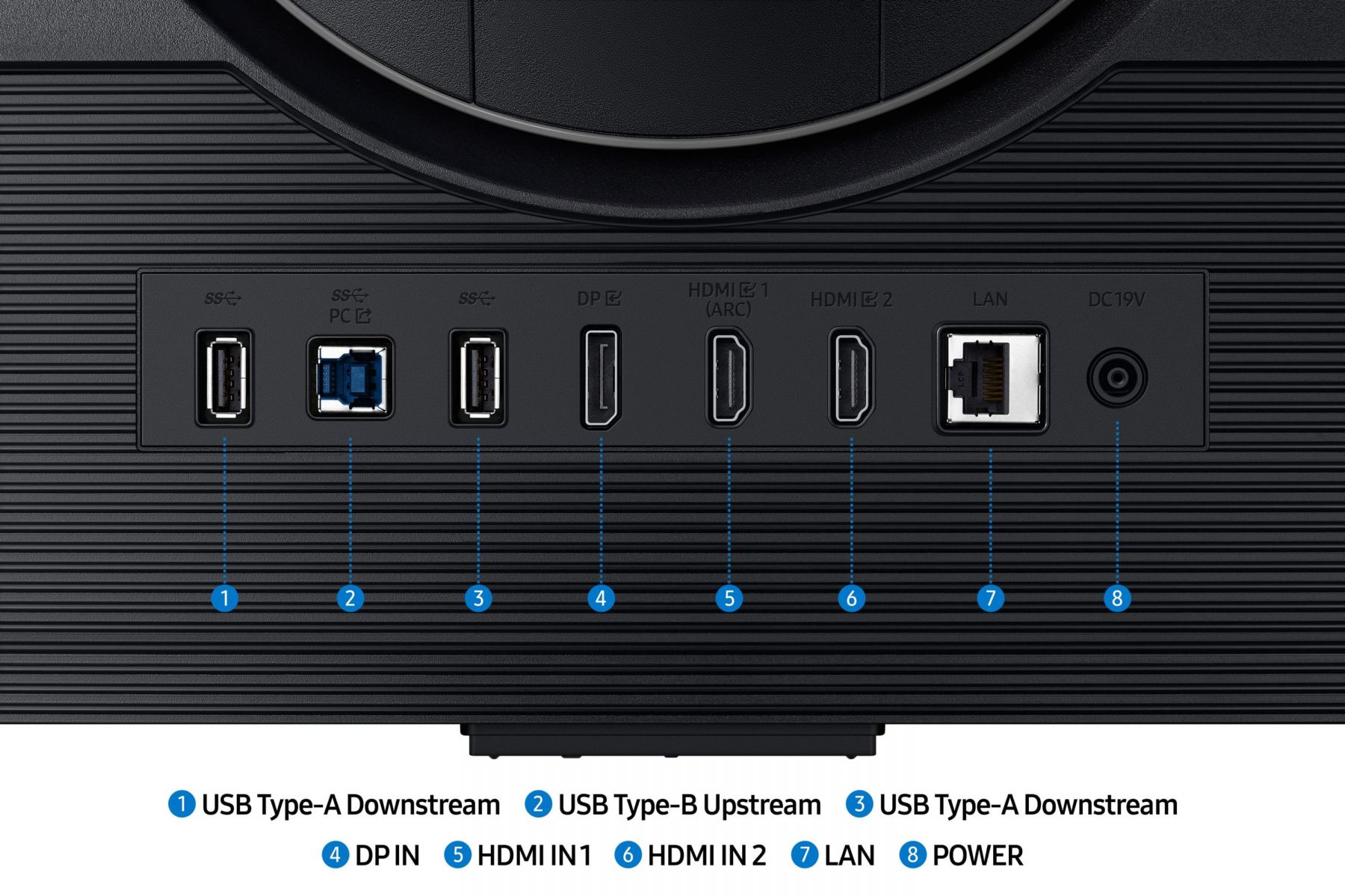 Входи:HDMI (v2.1) x 2, USB-B Upstream Port, LAN RJ-45, USB концентратор, 1 x DisplayPort v1.4